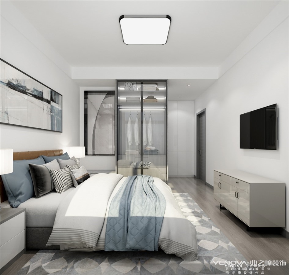 本案以白色和灰色为主题,白色简洁、纯洁,有限度的引进自然光线来处理空间,而灰色木纹与白色的搭配用丰富的结构把空间填满。整体空间线条简单利落简洁,简约而不简单,单一的色调给整个空间带来了另一种低调的宁静感,沉稳而内敛。