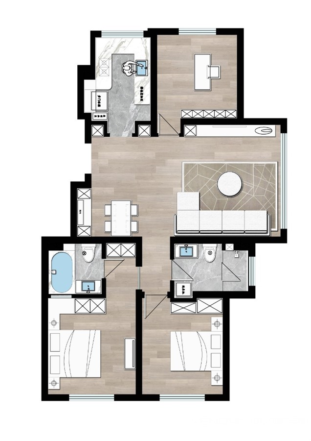 小区:凯盛源·玖郡 面积:129㎡ 户型:三居 风格:现代简约风格
