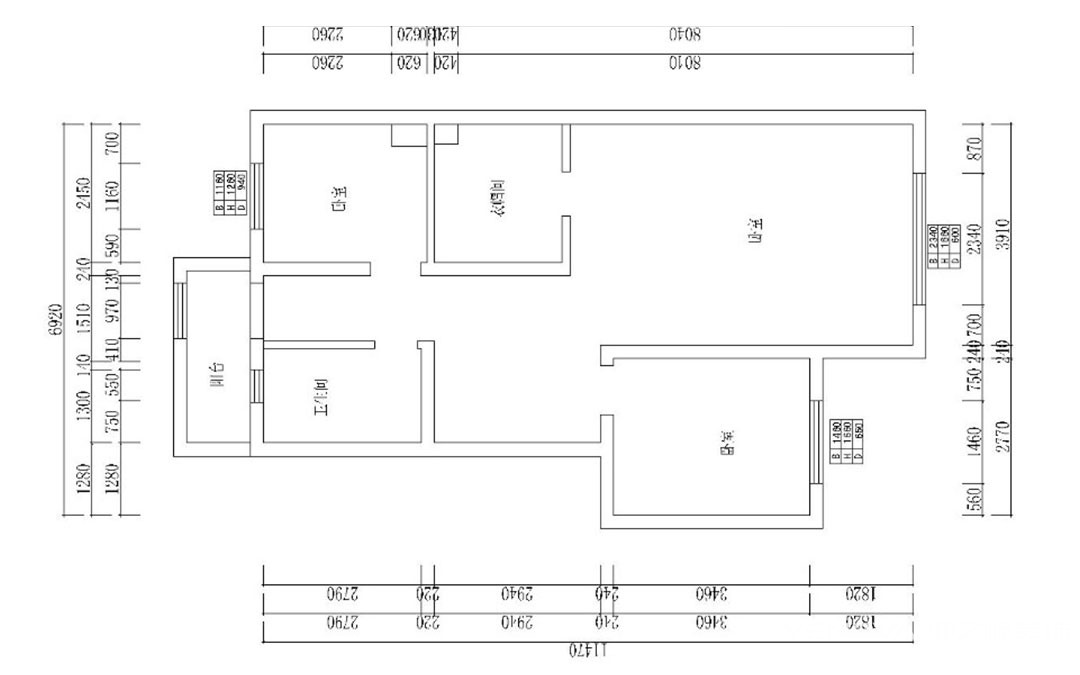 原始结构优缺点:南北通透,属于小复式。四个卧室,配以两个卫生间,方便实用,阳台隔在外面,可以拆除增加使用面积。
