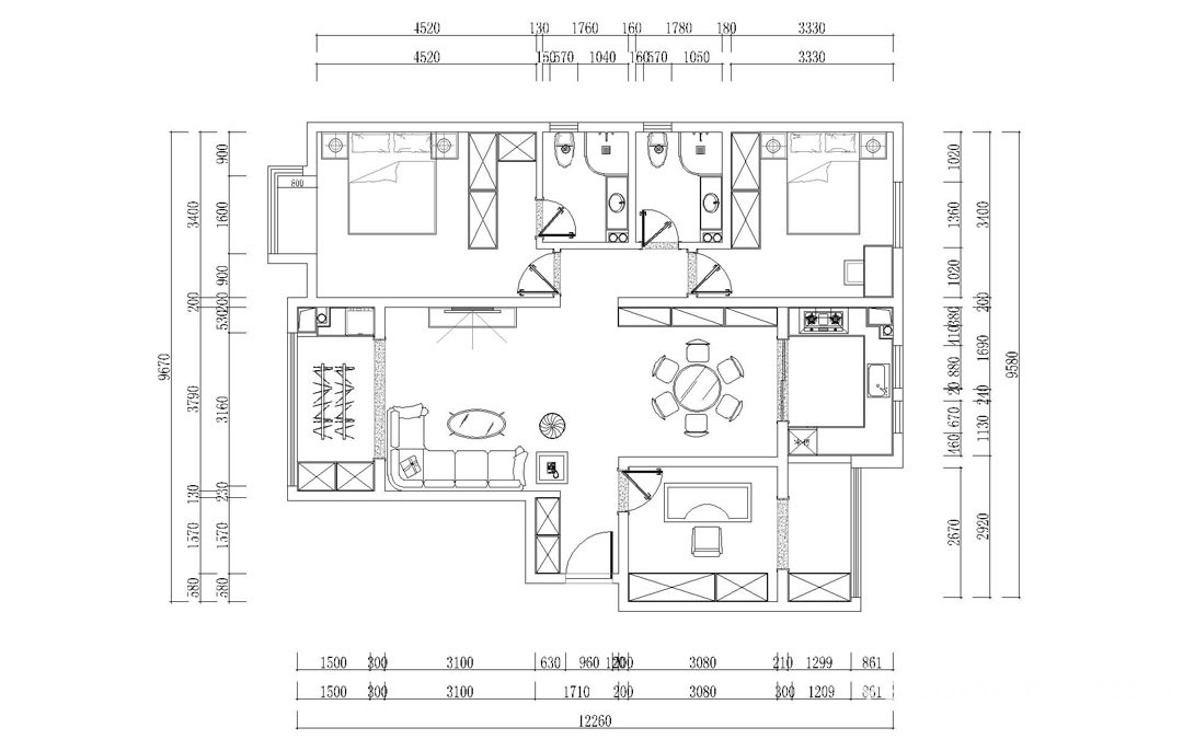 原始结构优缺点:南北通透,居于高采光也比较好。层高2.7米显的房子大,单独的门厅设计,客餐厅一体化,使得空间显得非常开阔。