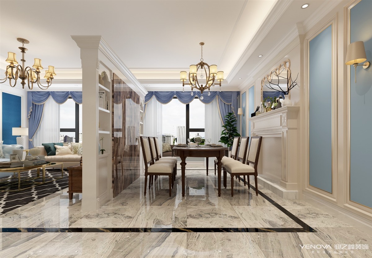 美式风格设计理念表现为追求华丽、高雅的古典风格。居室色彩主调为白色,家具为古典弯腿式,家具、门、窗漆成白色,擅用各种花饰、丰富的木线变化、富丽的窗帘帷幄是西式传统室内装饰的固定模式,空间环境多表现出华美、富丽、浪漫的气氛。下面通过各个居室的美式风格设计说明。