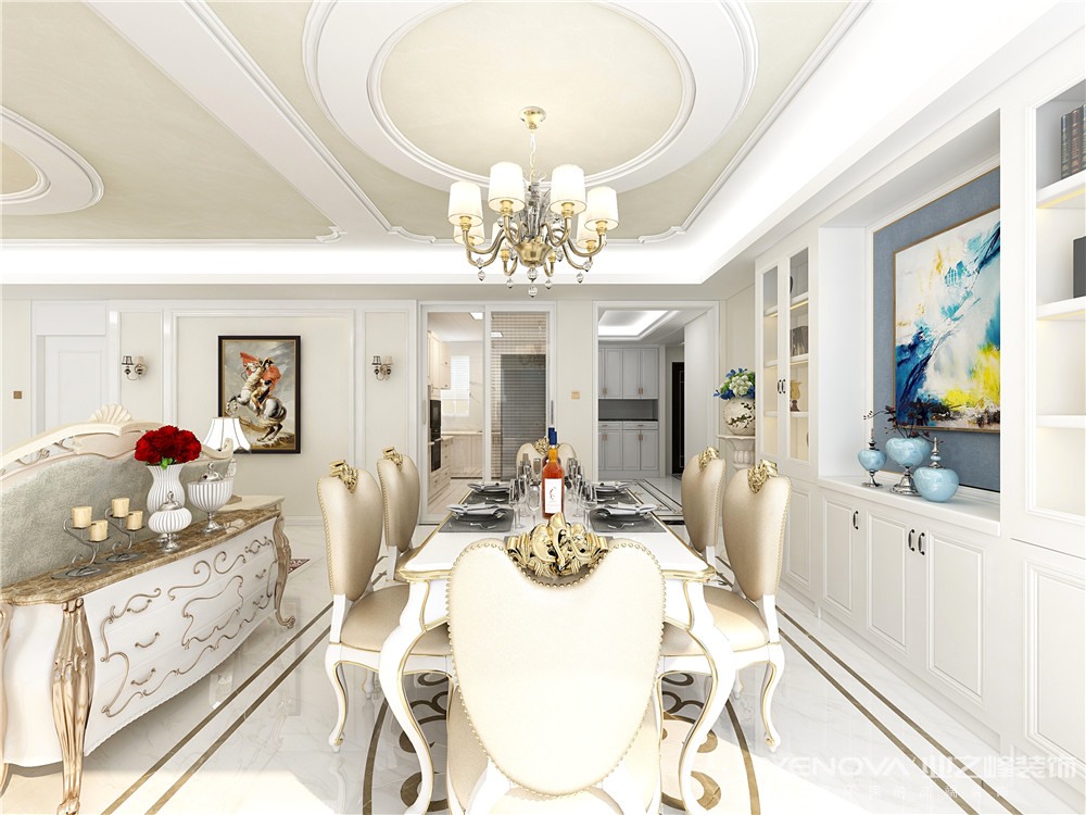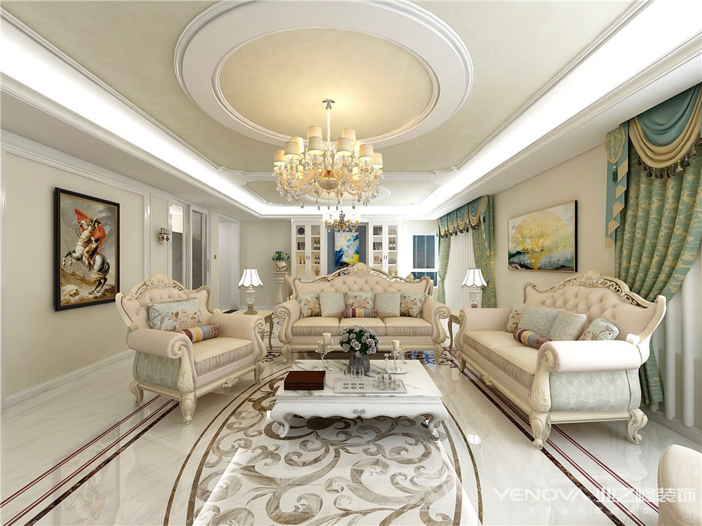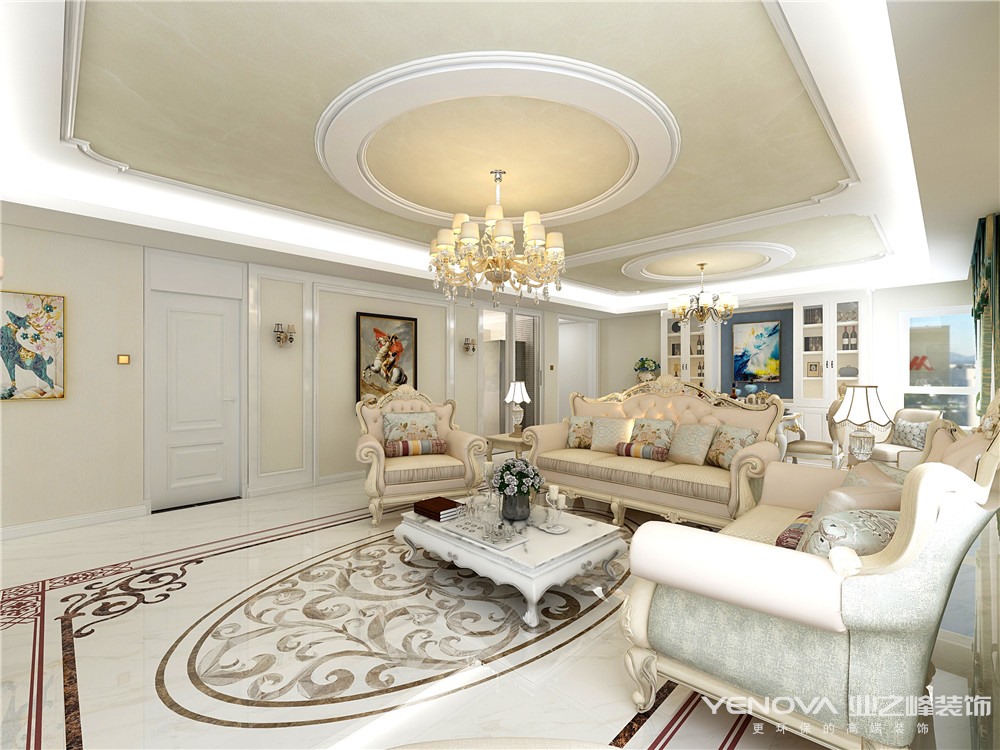 黄色有着无与伦比的光辉与灿烂,它与金色相似,被当坐着财富与经济的象征。米黄色的围合空间,用同色系的饰面材料来装饰顶棚与地面,给人以莫名的亲切感,并打开欧式富丽堂皇的空间色调。