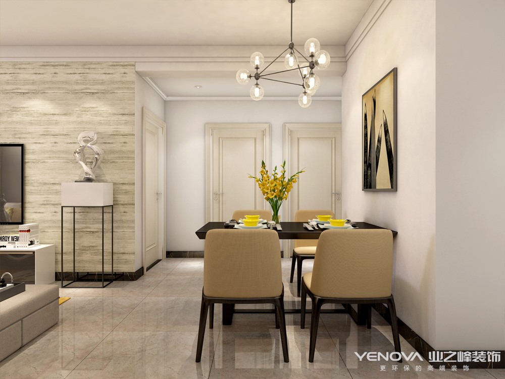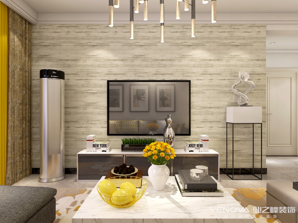 现代简约风格的特点主要是简约而不简单,以简洁的造型、完美的细节、时尚前卫的设计让无数的人为之心动。现代简约风格表达出了现在人所追求的生活,简单但精致,时尚却舒适。此案根据整个装修综合考虑,在墙面、吊顶等占据视觉比重较大的空间留白,以减少视觉负担。而且不推崇繁杂的装饰,饰品的使用并不多,但每一个都别具一格,而且造型、线条简单,却极具个性化。