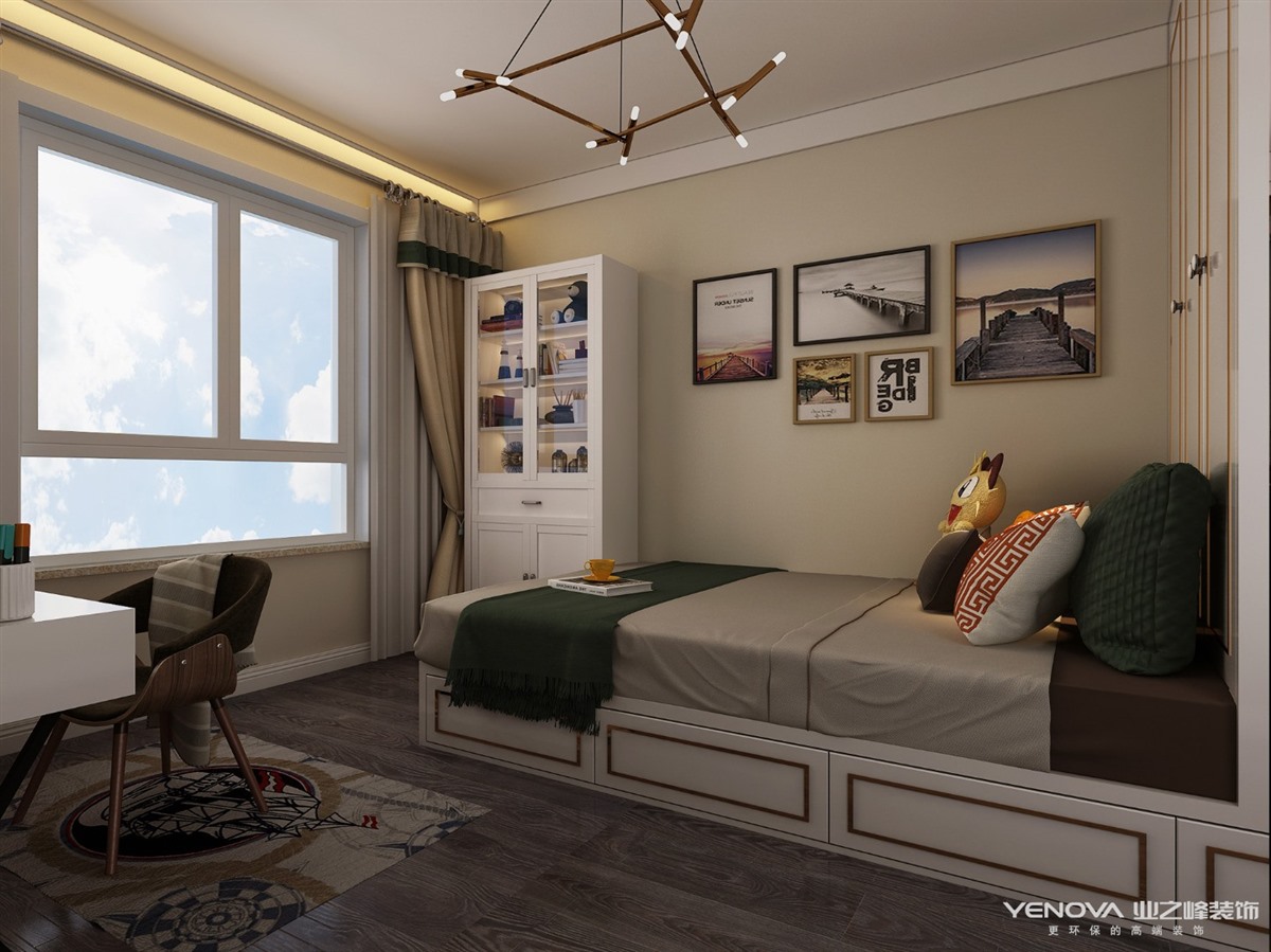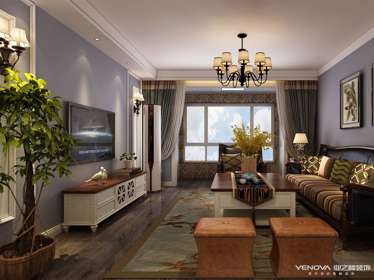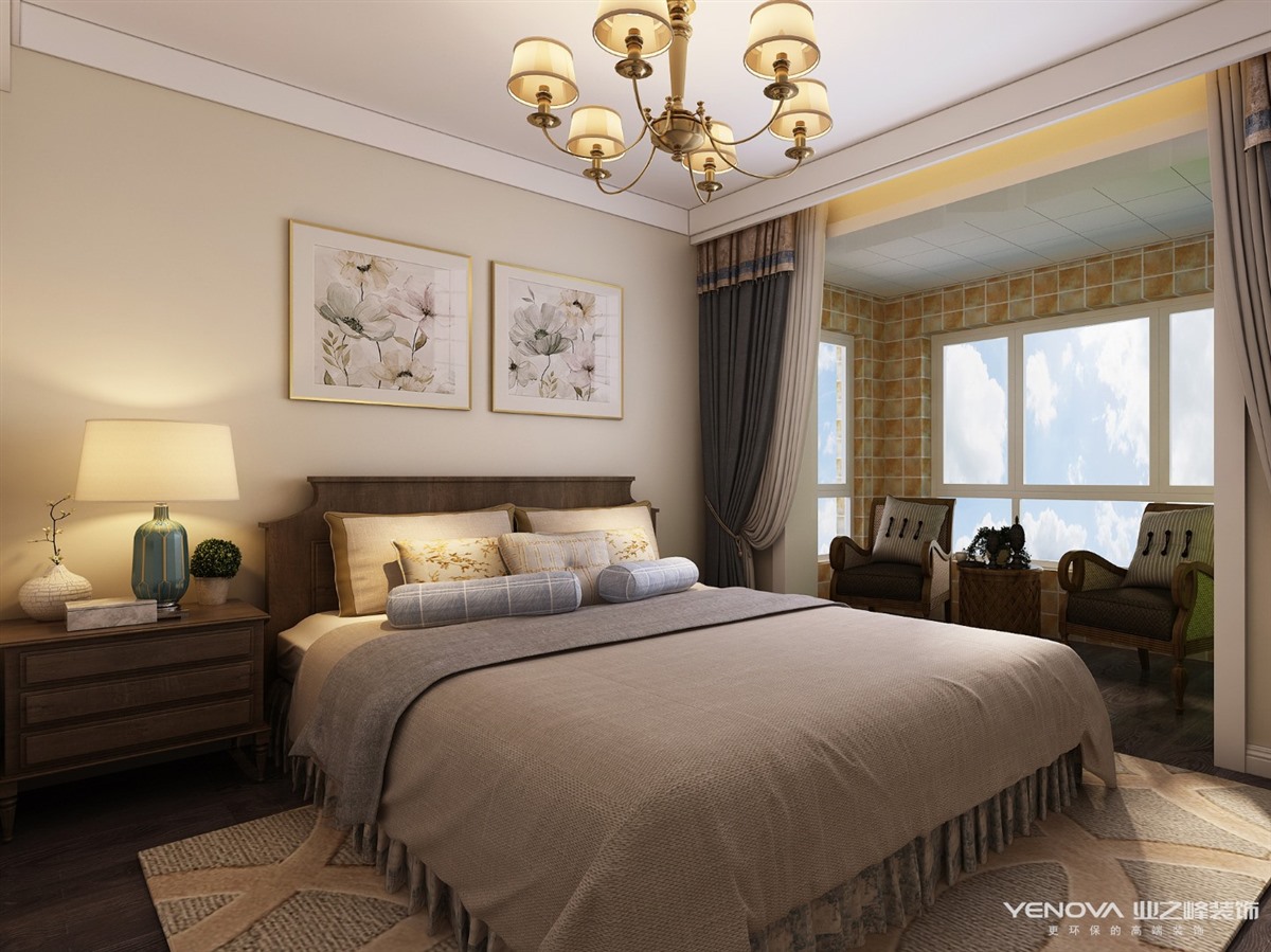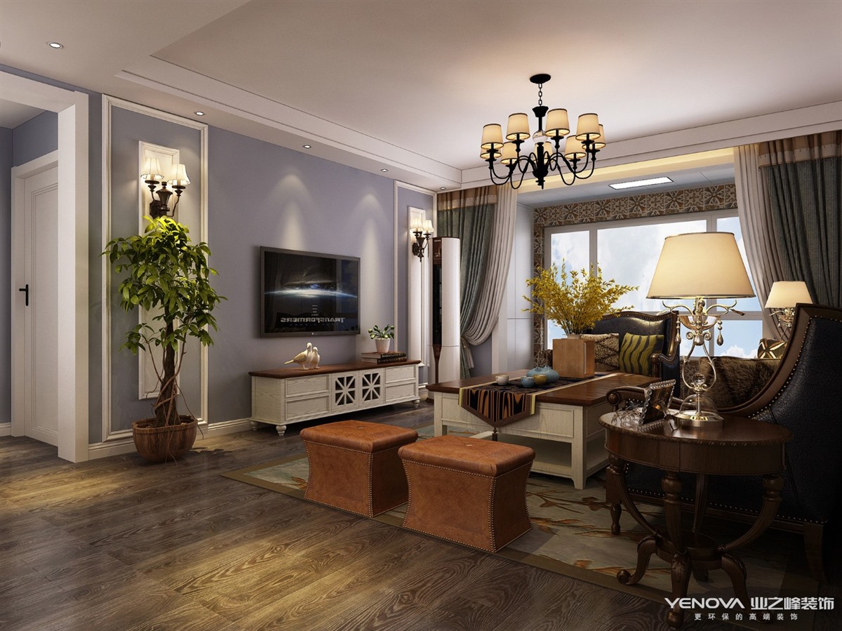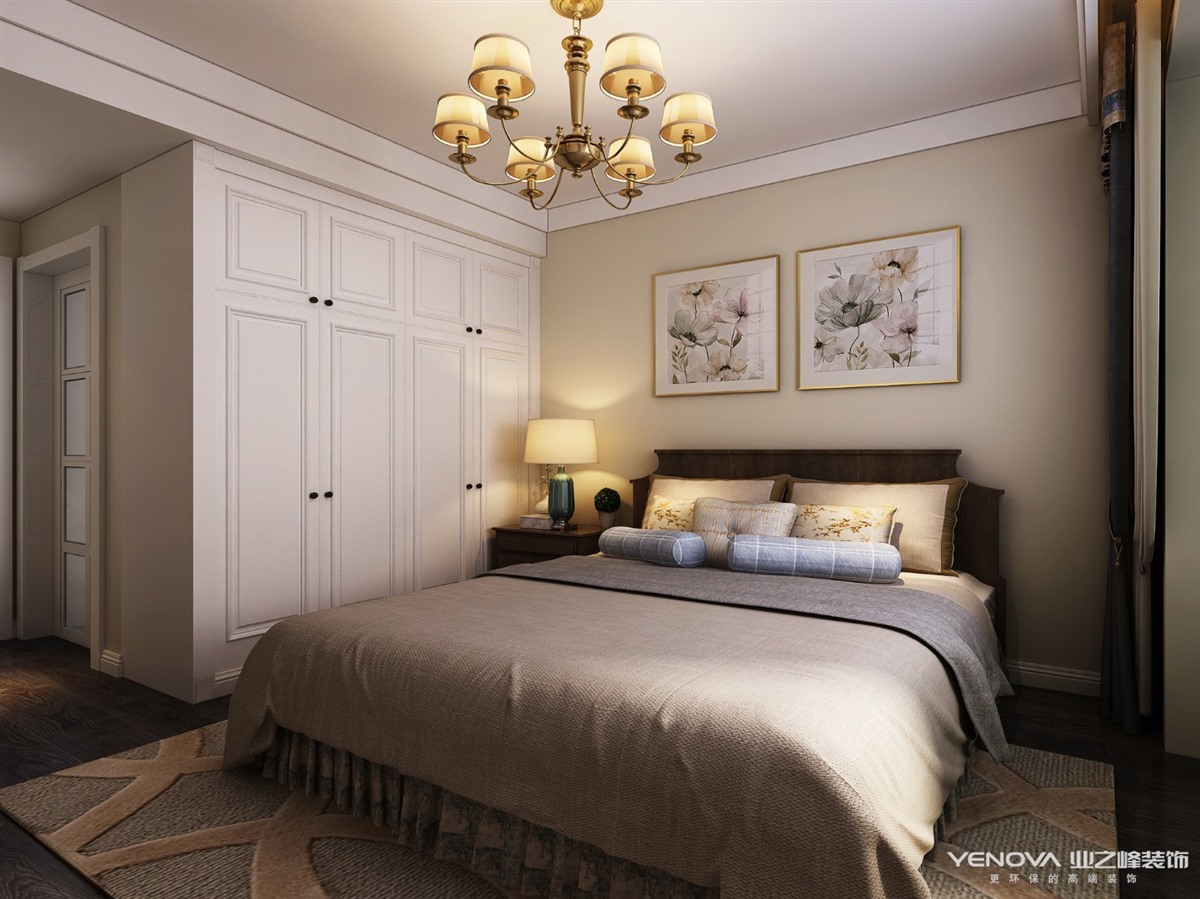 简美风格简化了一些复杂和繁琐的线条元素,保留了原有的流畅线条,使其看起来既含蓄又另有一番现代气息,调和出一种自在,舒心的家居氛围。客厅主色调采用了房间主人喜欢的蓝色做背景,影视墙用简单的欧式线条做点缀,整个客厅突出了美式家具。卧室则采用在简美风格装修过程中暖色为主色调,比较温馨、自然。