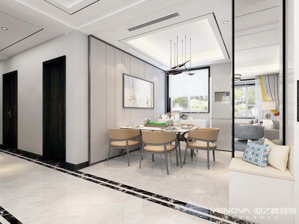 现代简约讲究合理的利用空间,不浪费每一点不必要的空间,不做一点不必要的设计,设计美观实用相结合。最大限度的将设计和生活贴近,实用和美观结合。
