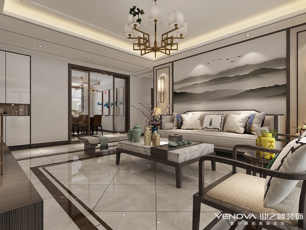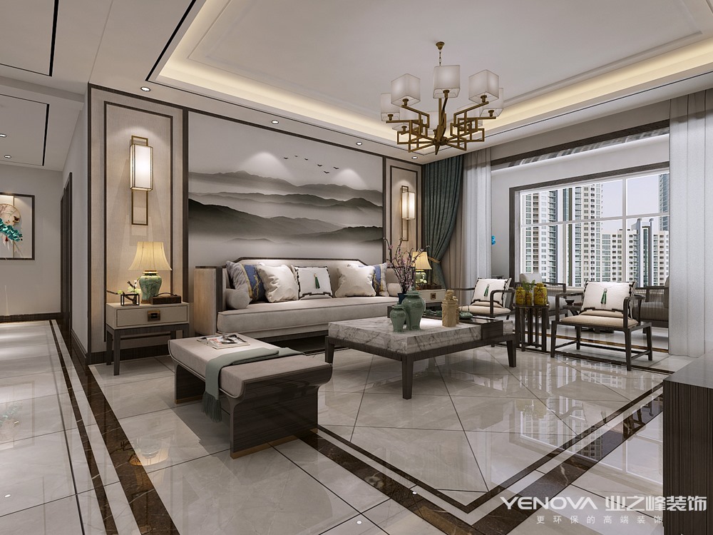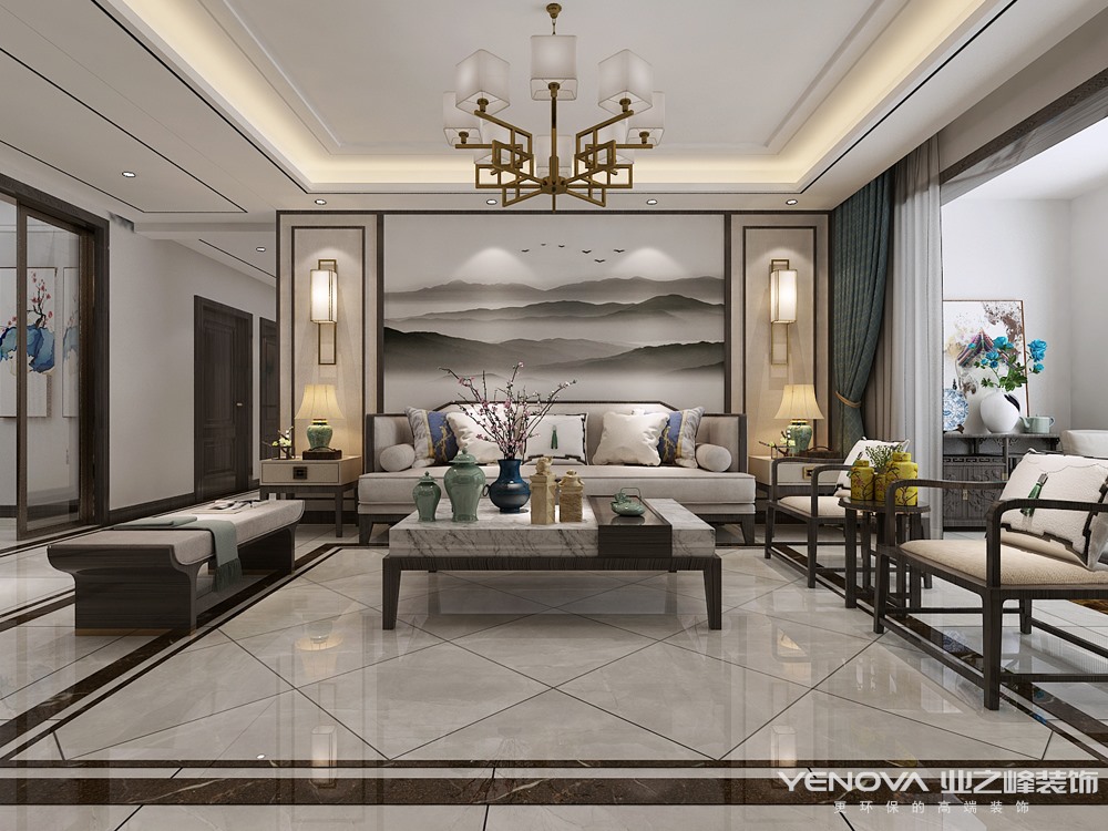 本案整体风格是用新中式而稳重的手法演绎大气精神,同时又不失高尚雅致的品味生活。将现代和传统元素结合在一起,以现代人的审美打造古典韵味的事物,运用简约大气的手法,采取中国山水元素为业主营造一处经典、气派、雅致的大居所,以此体现出主人优雅舒适的生活态度。化繁为简,吐故纳新是该居所的创作内核。设计放弃对风格样式的表象追求,在情绪、文化、气质、认同层面,寻找可以联系、沟通、协调的路径,以此表达人的精神诉求。