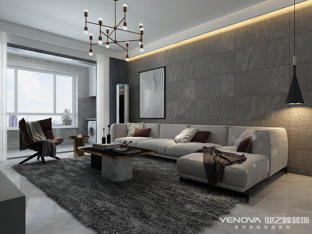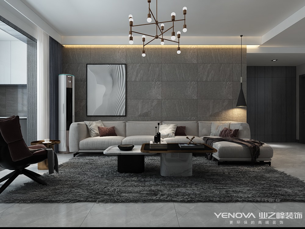 黑白灰的格调与平时见到的暖色调的现代简约不同,黑白灰色调让人感觉更加个性,干练,更加具有艺术感!客厅电视背景墙是石材上墙,客餐厅是中央空调,所以做了吊顶处理。全房壁纸,客餐厅是瓷砖,卧室木地板。简约黑白灰装修风格是现在很多年轻人装修的选择,没有花哨的色彩设计,也没有多余的装饰,一切都看起来那么素雅安静,黑白灰色调并不是暗沉和无趣,它营造的时尚感也是其他色调无法比拟的!