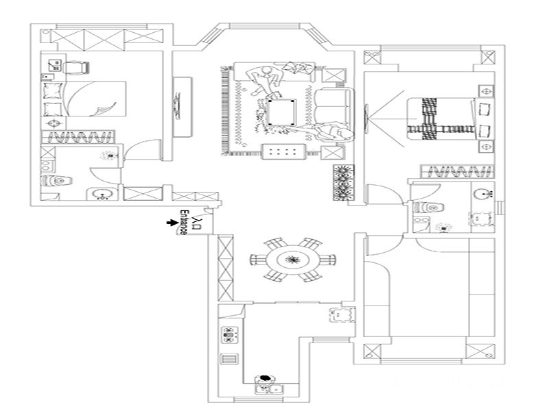 小区:碧景园 面积:107㎡ 户型:三居 风格:欧式风格