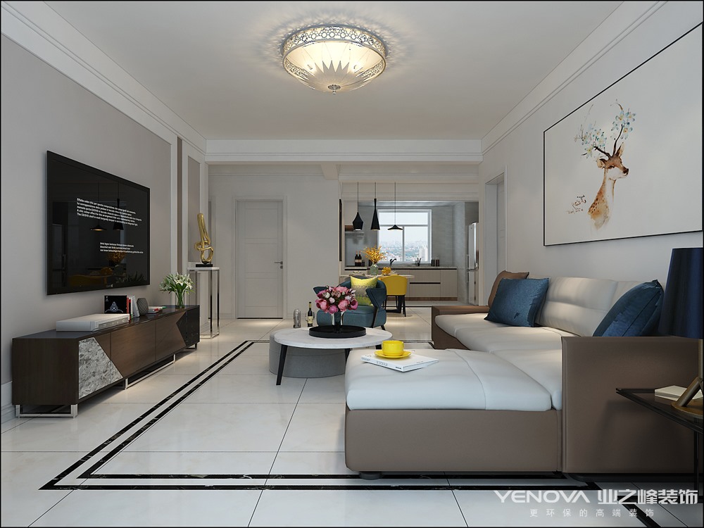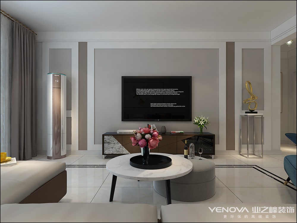 现代风格是比较流行的一种风格,追求时尚与潮流,非常注重居室空间的布局与使用功能的完美结合。本案室内空间布局整体简洁大方。现代风格是比较流行的一种风格,追求时尚与潮流。本案外形简洁,功能强,强调室内空间形态的单一性以及抽象性。所以本案设计客厅