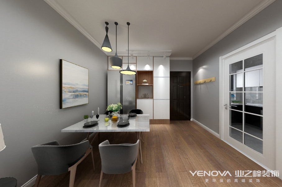 装修热线:0791-86296016,本案是一家三口居住,选择了北欧风格,以简洁明快为主调,加上了些许现代的元素在里面相互结合,相交融,从餐厅到客厅,没有特别的界限划分,让两个空间的功能关系也变的十分亲密,从玄关进入,等候的是爱你的人和热腾腾的饭菜,让人从心里感受到了家的归属感,温馨而又简单。