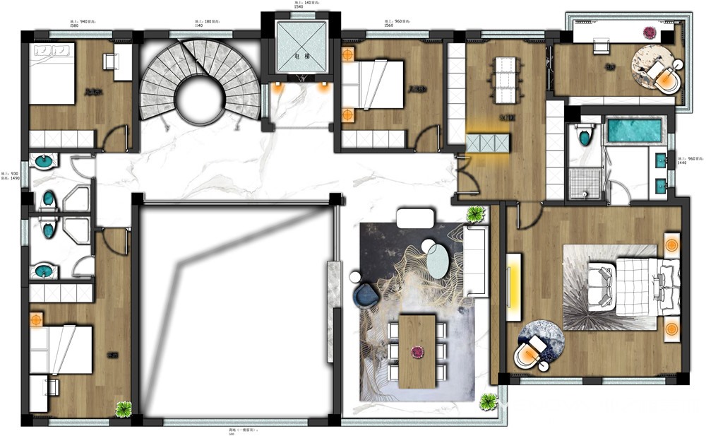 小区:麓山国际 面积:683㎡ 户型:别墅 风格:欧式风格