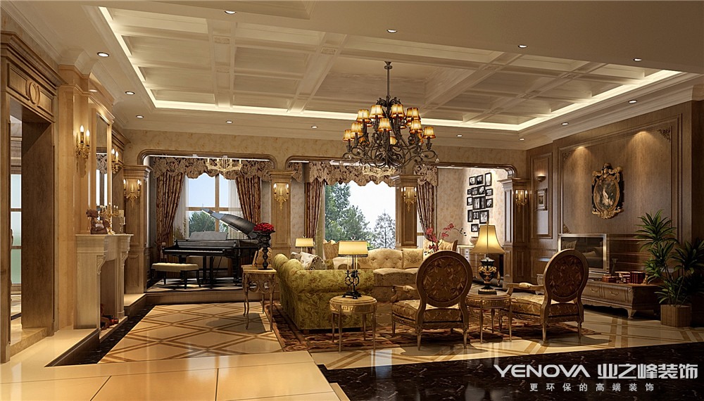 空间显得格外明亮而宽敞,华丽水晶吊顶星光熠熠,营造明亮舒适的整体环境。室内空间设计体现设计师对于法式风格美感的独特表述,加上新颖独特的材质运用,整个空间的设计都透露出低调奢华的高品位气息。整体空间开阔视野,沉稳大气法式家具搭配精致带有异域风情艺术品点缀,营造出富有西方文化的品味与格调,凸显主人追求高雅的生活品质和文化素养,深厚的历史文化内涵凸显其中。