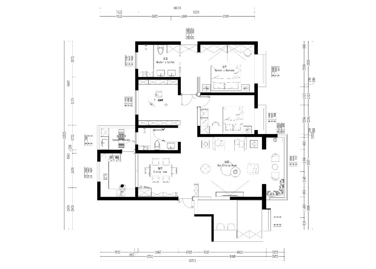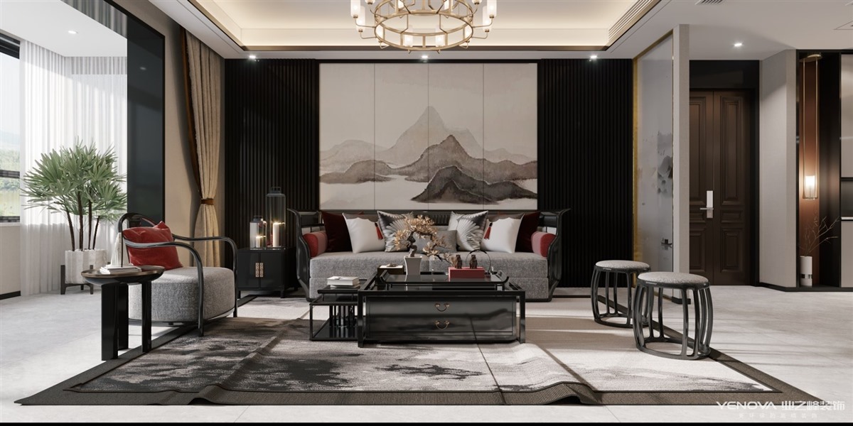 小区:万达西安one 面积:172㎡ 户型:四居 风格:新中式风格