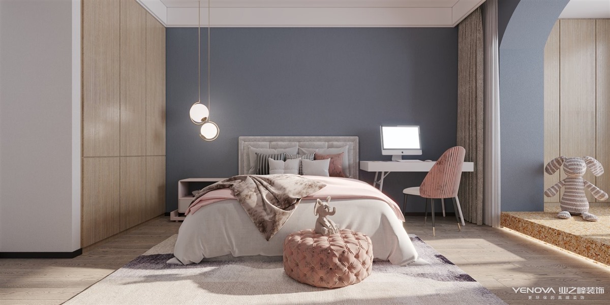 此方案定位为现代简约风格,入户以蓝色为基调,给进户的人一丝宁静感。客厅与书房连接,在视觉上通透又有互动性,餐厅与客厅开敞联合,更大化了空间的通透性。主卧的设计相对稳重,更好的打造了休息空间。儿童房是以自然、童趣为主题,满足孩子的趣味性。