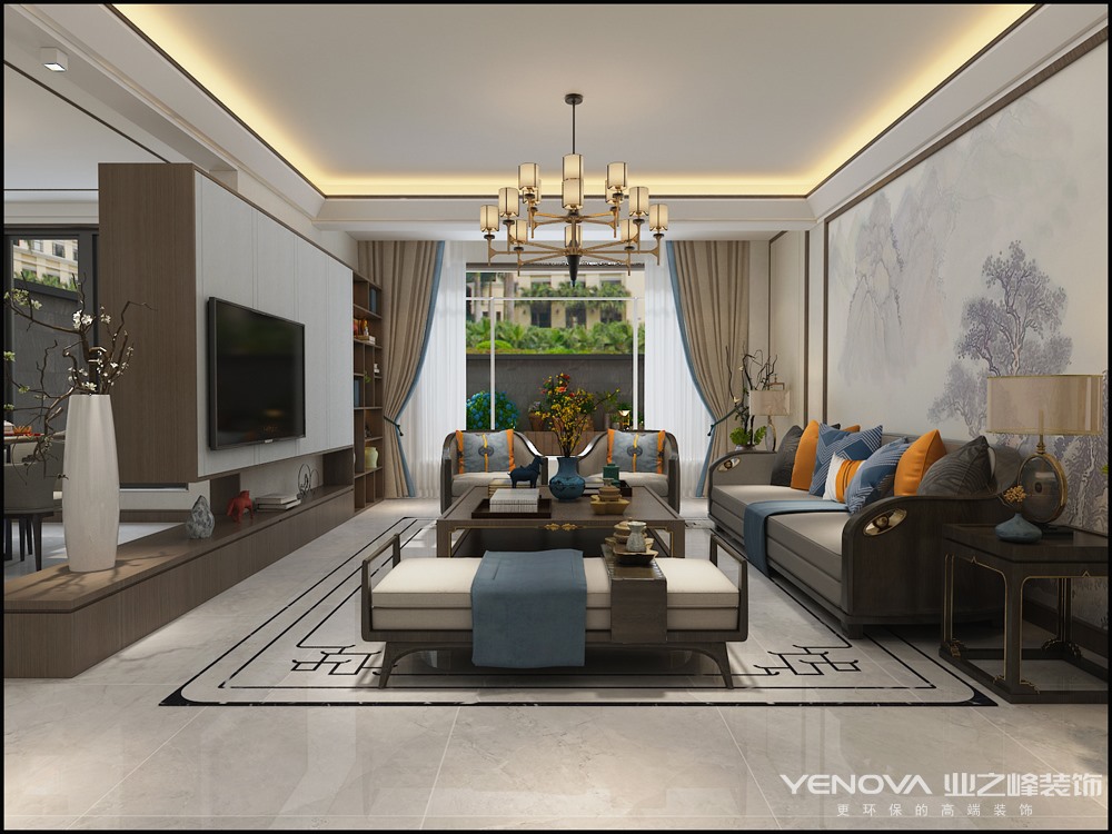 本案例业主是一位50岁左右事业成功男士,性格沉稳,而女主人是一位追求时尚独立的女性,喜欢现代的简洁典雅与浪漫,平常2口人居住,节假日3-5口人居住。在风格定位上,通过设计师与业主的沟通,最终将风格简约中式风格