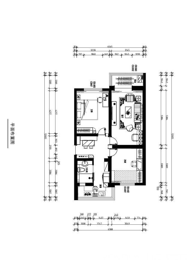 小区:裕东小区 面积:76㎡ 户型:二居 风格:现代简约风格