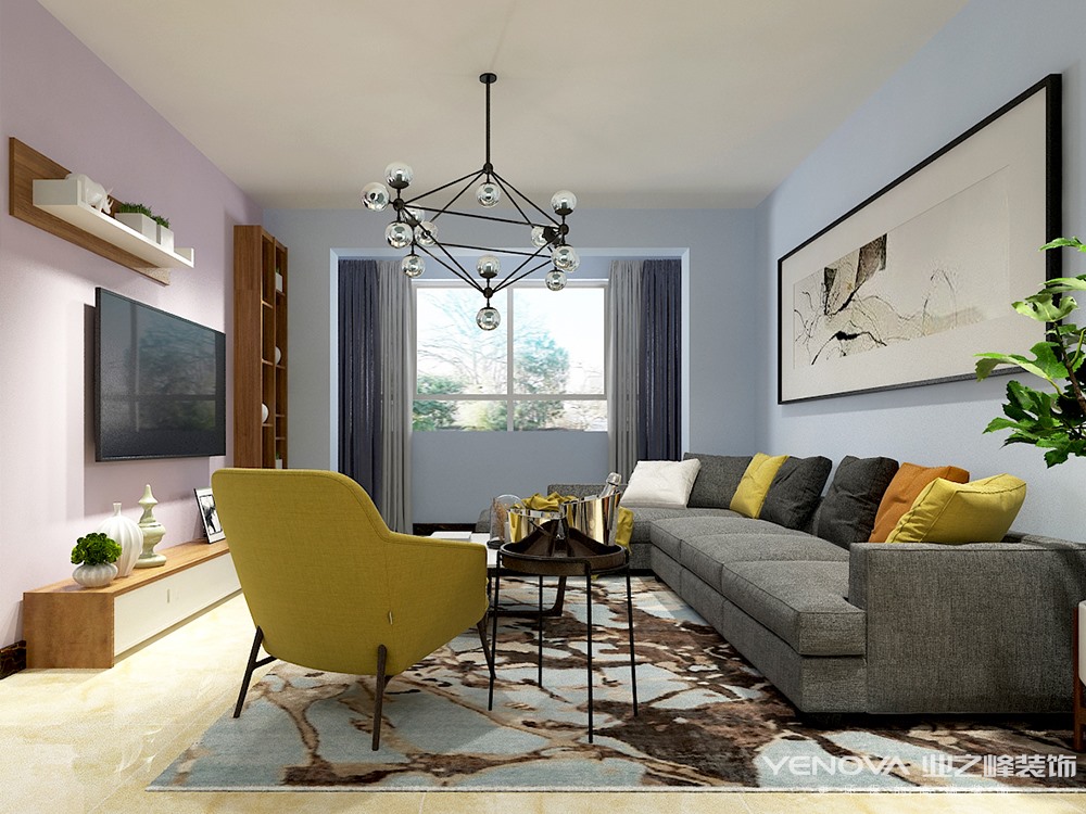 本套方案为旧房改造选择现代简约风格,本着轻装修重装饰的通过空间布局上的合理运用,既能在生活上满足客户的需求,又传达出现代简约风格独特的灵魂。本案设计简约却不简单,时尚而不繁杂,带给人们简单舒适的生活体验:在吊顶占据视觉比重较大的空间留白,以减业主少视觉负担。颜色大胆采用蓝色为主色调加以黄色粉色点缀,带给业主简约时尚的生活体验,体现了业主不羁的生活态度营造出简洁明快、前卫的氛围;让室内看上去明亮宽敞,沉淀心灵,消除工作上的疲惫不堪。