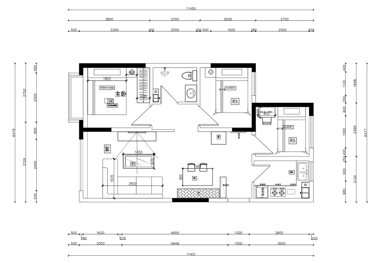 小区:金秋泰和郡 面积:88㎡ 户型:三居 风格:现代简约风格