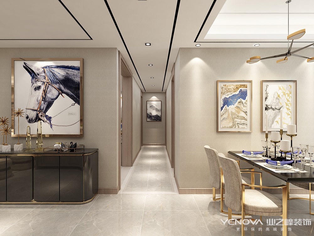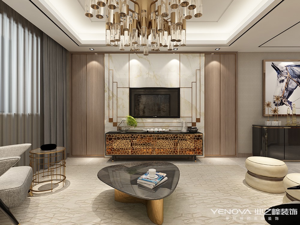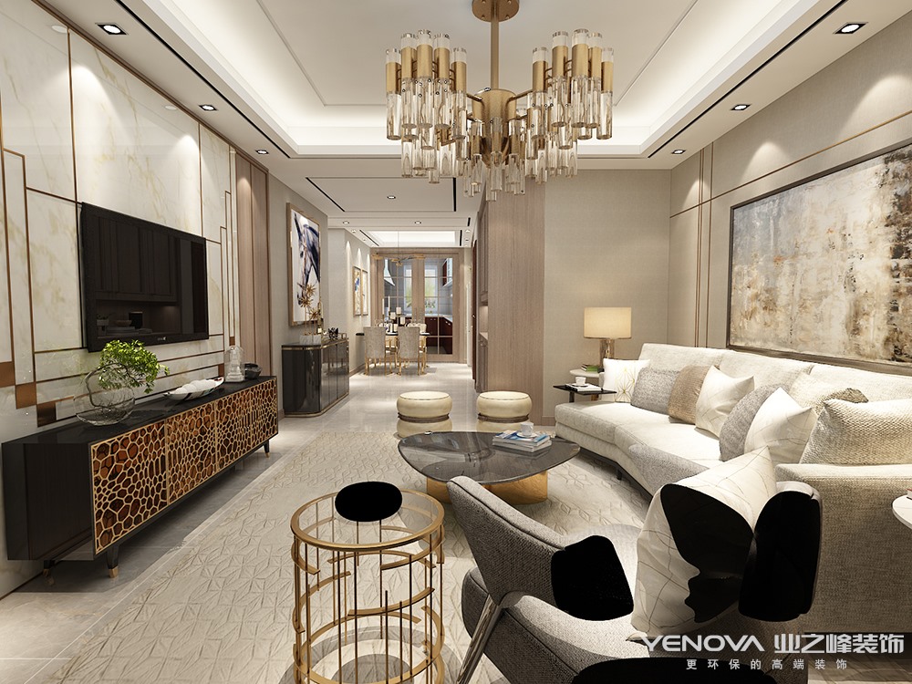在现代轻奢风格的软装中,最常见的就是金属、大理石、皮革制品,这种质感十足的选材能完美的凸显出轻奢风格的低调奢华。在舒适度与观赏度方面,这些材料又能完全达到现代奢华的要求