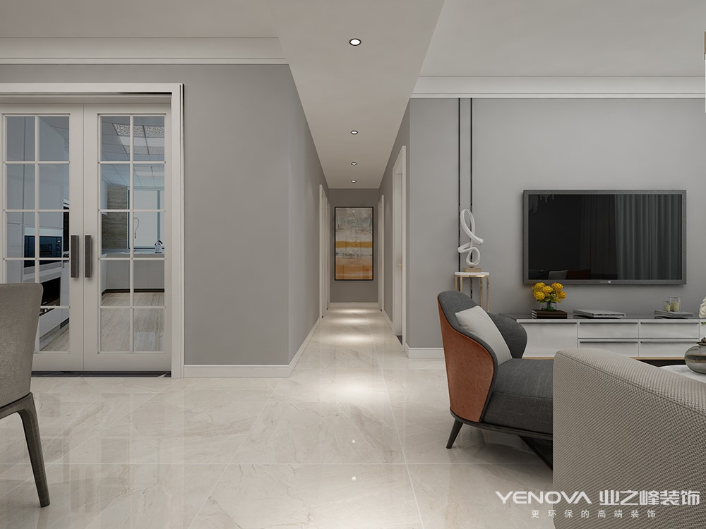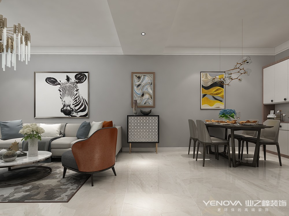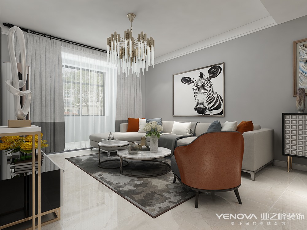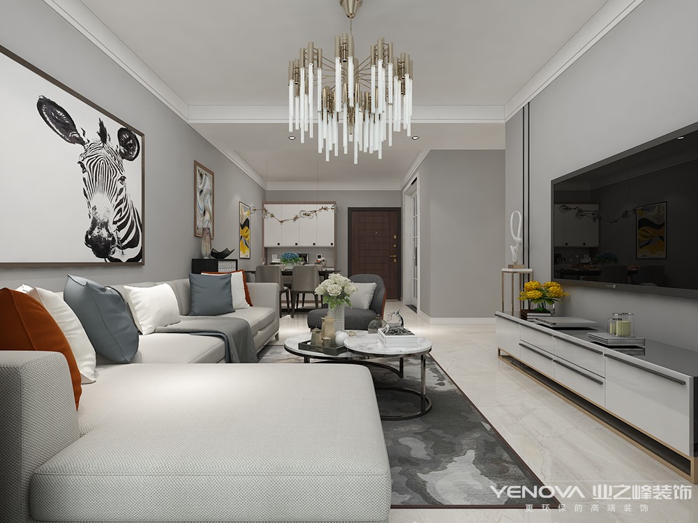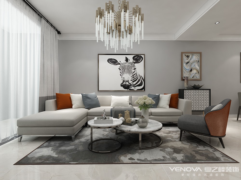 空间,不仅是一个用于展示建构的场所,它是一个有生命的多元化载体,拥有多个维度,多种思维。而设计是将这些无形的情感,转换成可以去触碰的实体,由此来填充空间真正想要表达的意义。因此,在空间的规划上,基于对生活的理解,尽可能贴合实际的生活方式来体现。在用色和选材上,力求真实、舒适、克制。以中性色彩为基调,附以简单利落的线条去扩大空间感。爵士白茶几作为整个空间的中心,沙发、单椅的摆放,环形向外辐射。利用雕塑、不锈钢这些工业性较强的材料来点缀,与低调纯粹米咖色系的巧妙融合,营造出一个属于现代格调的舒适区域。
