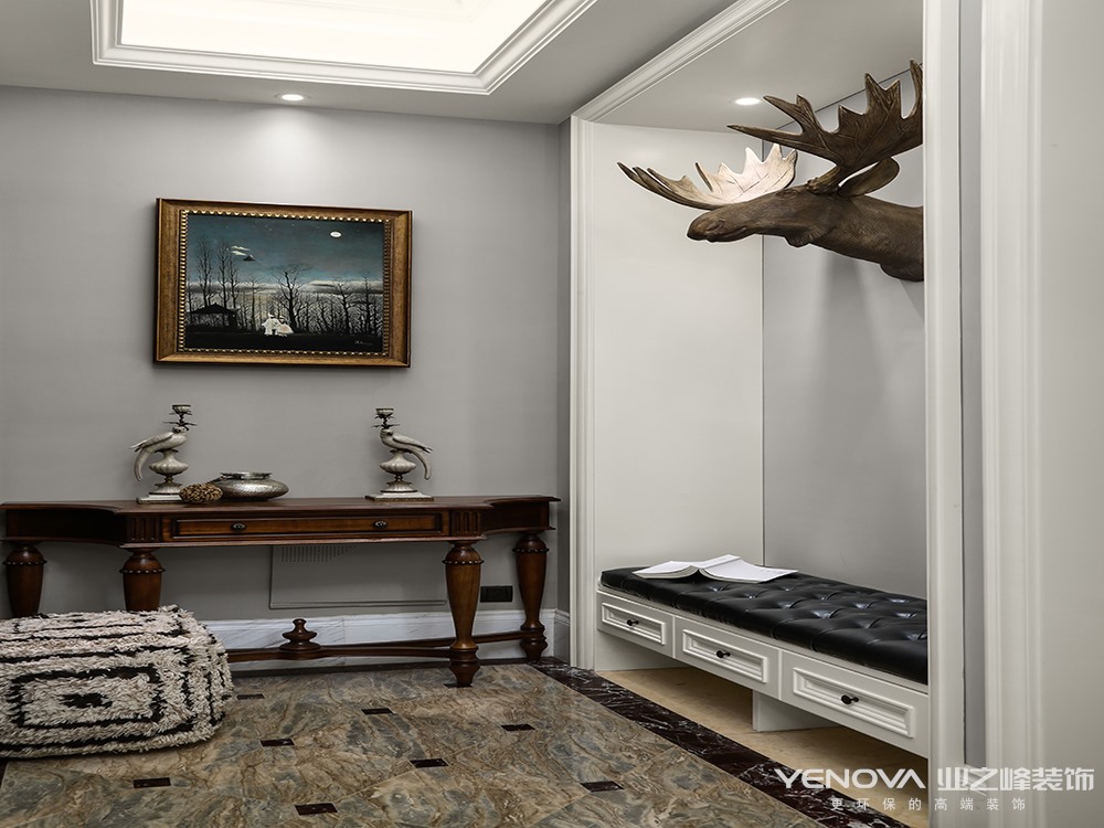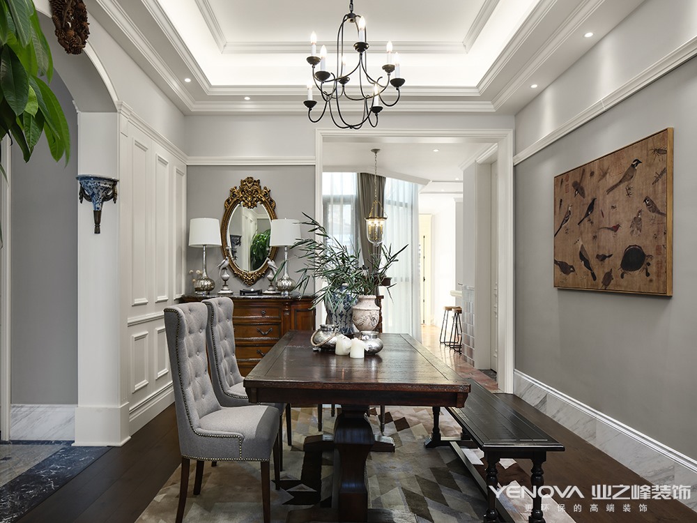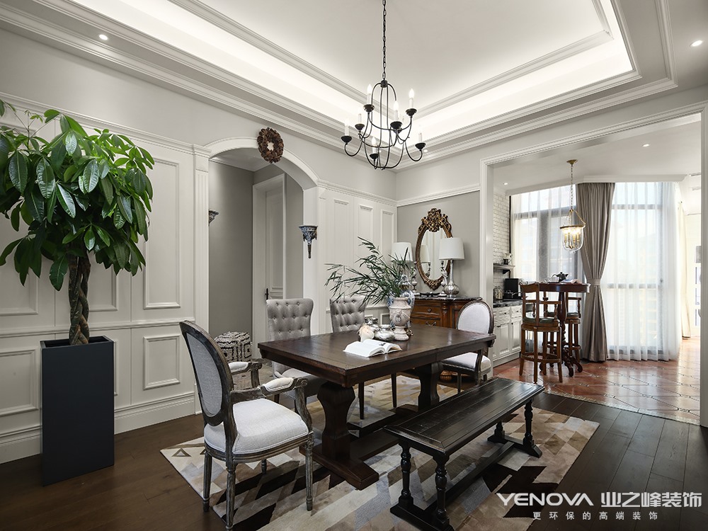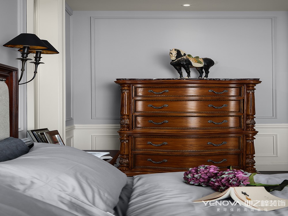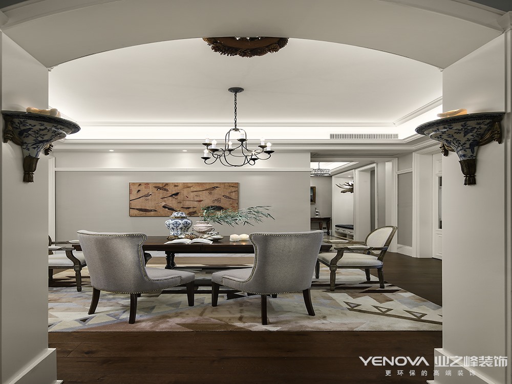 美式风格继承了传统欧式风格的装修特点,吸取了其风格的“形神”特征,在设计上追求空间变幻的连续性和形体变化的层次感,体现品质,典雅的生活态度。