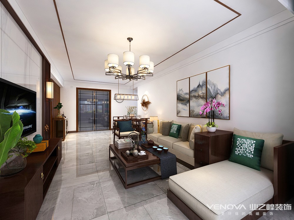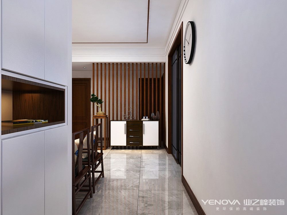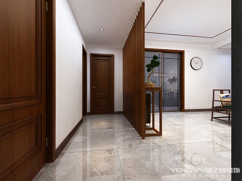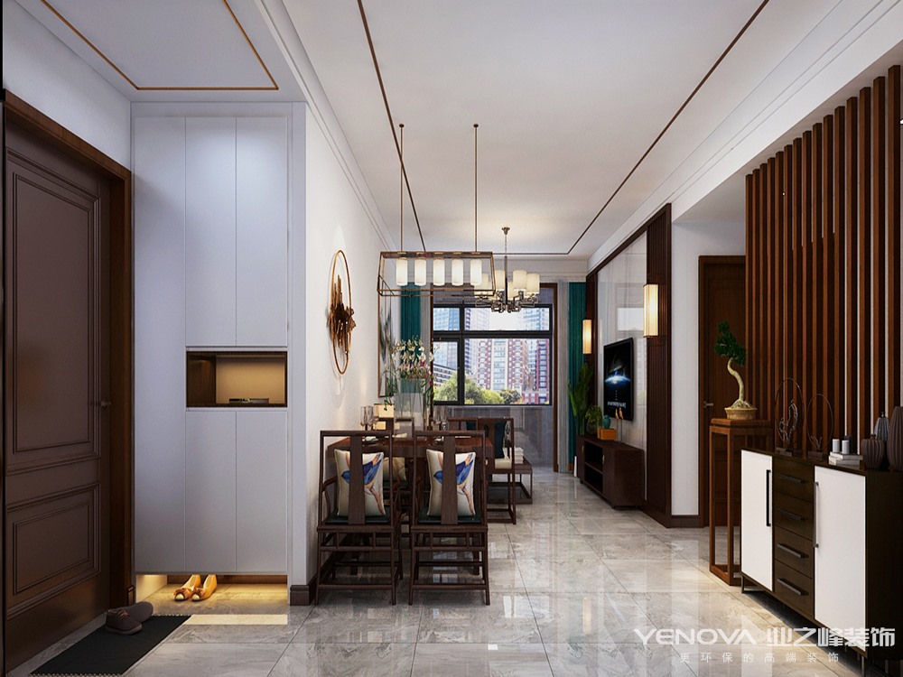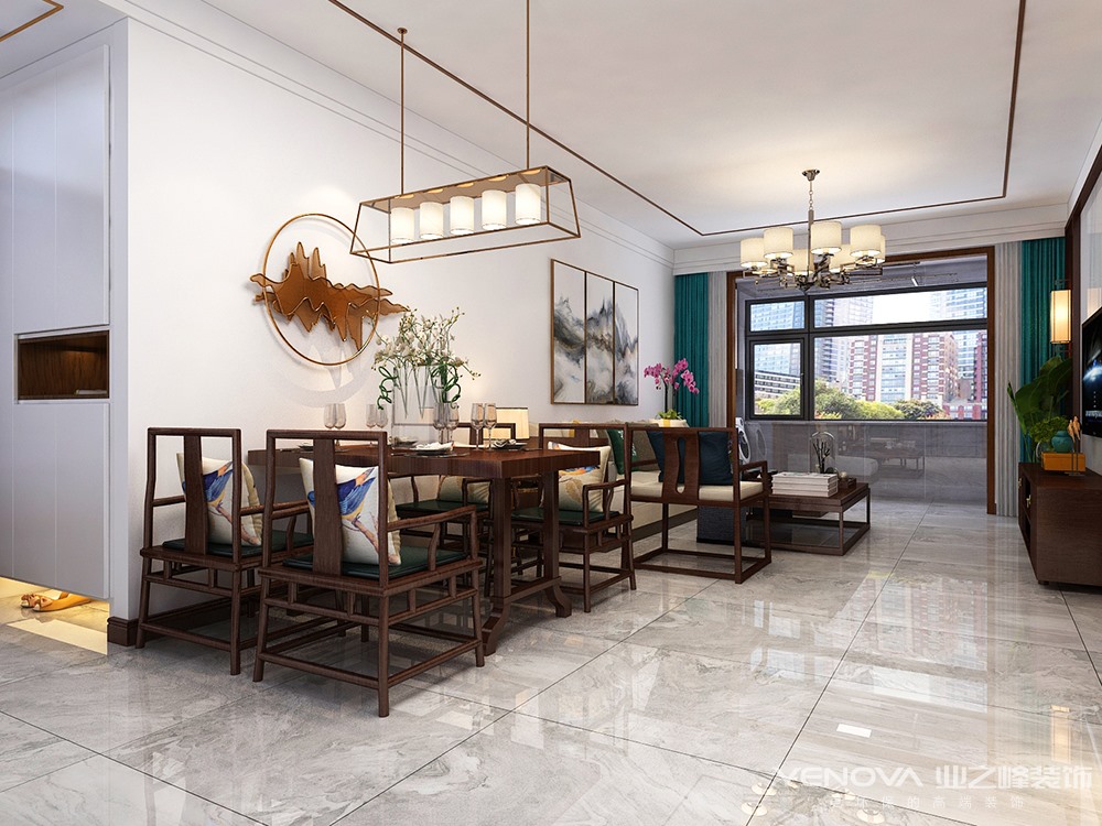 新中式风格非常讲究空间的层次感,在需要隔绝视线的地方,则使用中式的屏风或窗棂、中式木门、工艺隔断、简约化的中式“博古架”,通过这种新的分隔方式,单元式住宅就展现出中式家居的层次之美。再以一些简约的造型为基础,添加了中式元素,使整体空间感觉更加丰富,大而不空、厚而不重,有格调又不显压抑。