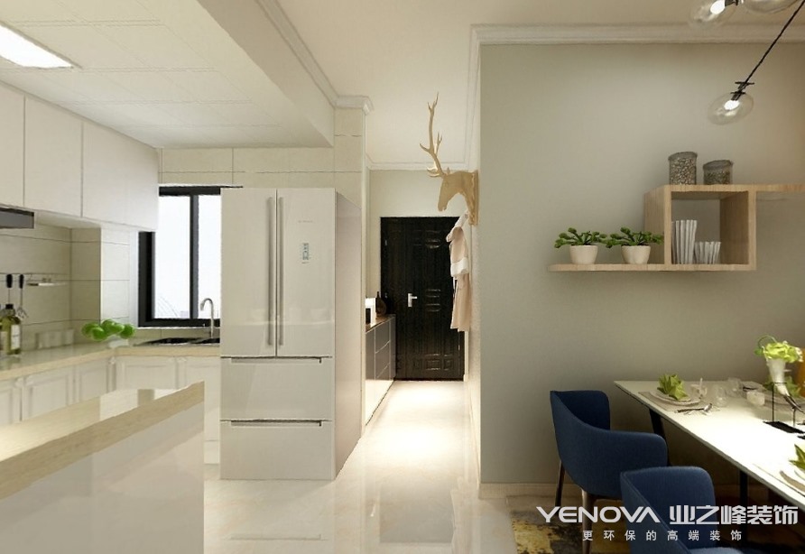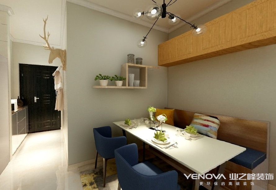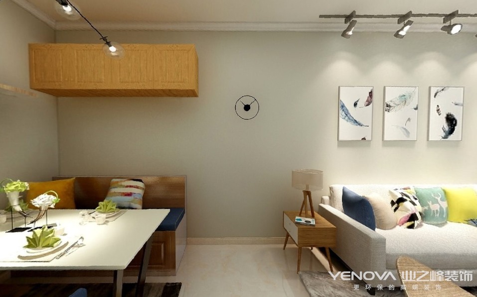 装修热线:0791-86296016,此案例住户是一对有点年纪的夫妻居住,两人喜欢简简单单温馨的感觉,厨房选择了开放式设计,餐厅选择了卡座式靠椅,虽房屋整体格局并不是很大,但巧妙的设计手法,使得整体空间显得麻雀虽小,五脏俱全;墙面采用暖灰色,加之软装些许亮色的点缀,巧妙的搭配显得全屋温馨而简单。