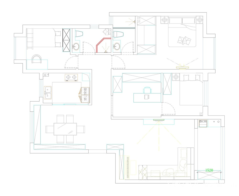 小区:联泰天悦 面积:138㎡ 户型:三居 风格:现代简约风格