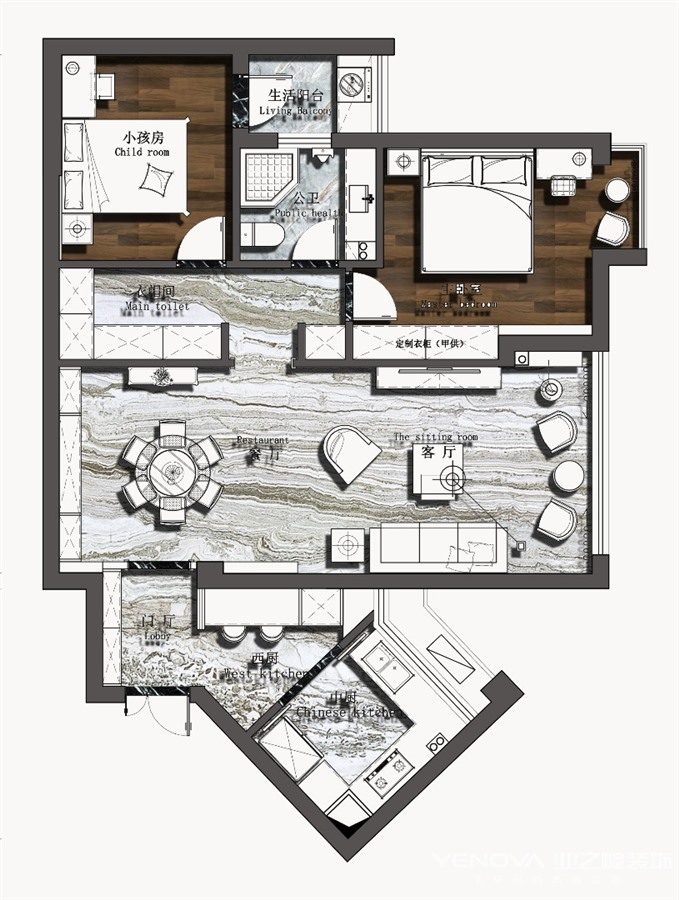 这期案子的屋主,是个精致的年轻女性,对生活很有想法喜欢精致的线条感,身处繁忙喧嚣的餐饮行业,特别希望自己的家能够让人心情放松和愉悦。所以从客餐厅到卧室,都能看到层次丰富,细腻而精致的线条。设计师用细腻的金属线条勾勒出雅致与大气。软装上搭配了一些跳跃的颜色,彰显出女屋主的女王气质也使得整个空间年轻有活力,从而运用了一些高贵雅致的色彩,来治愈生活中的不开心。