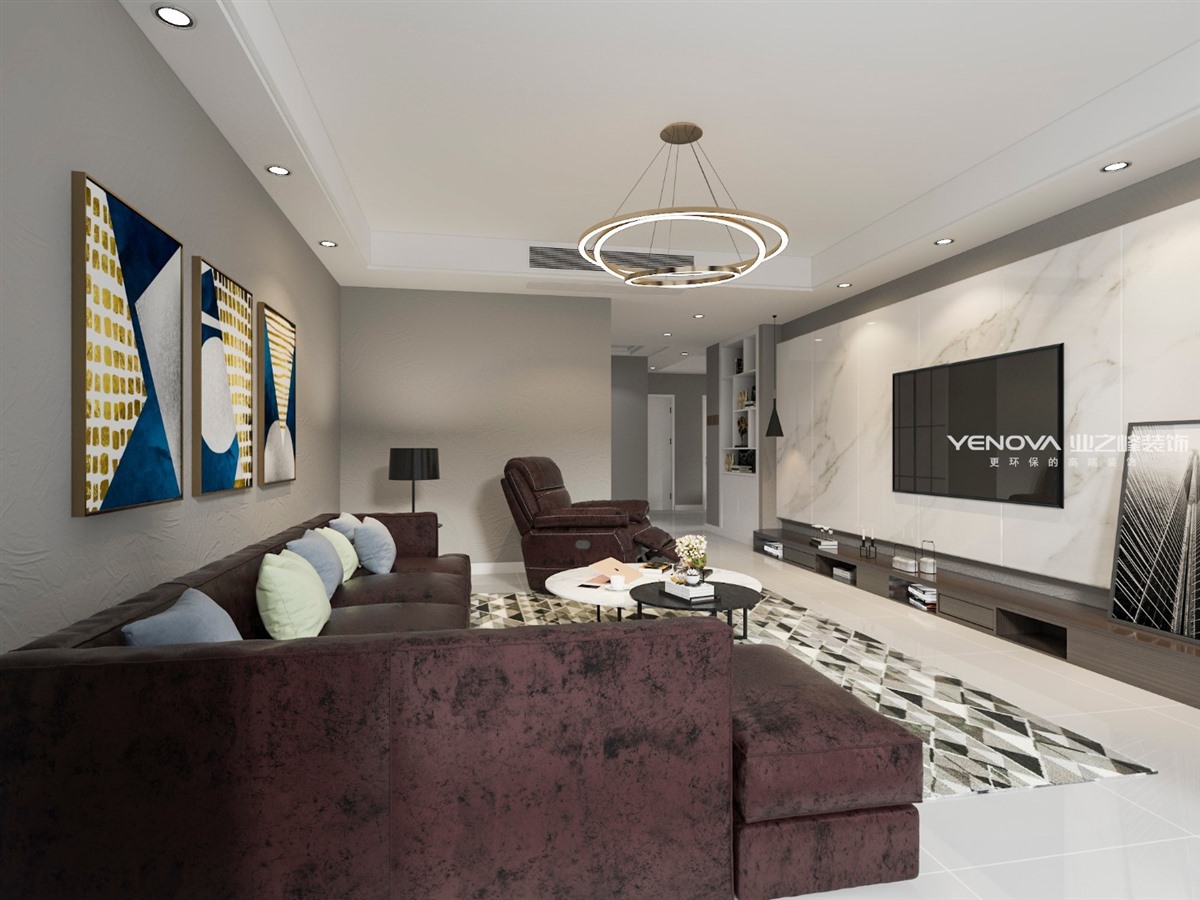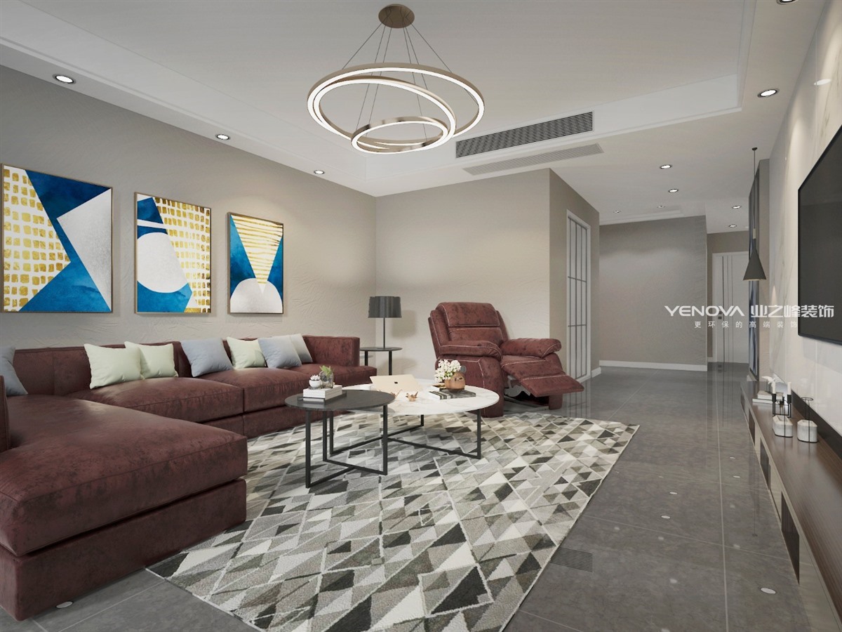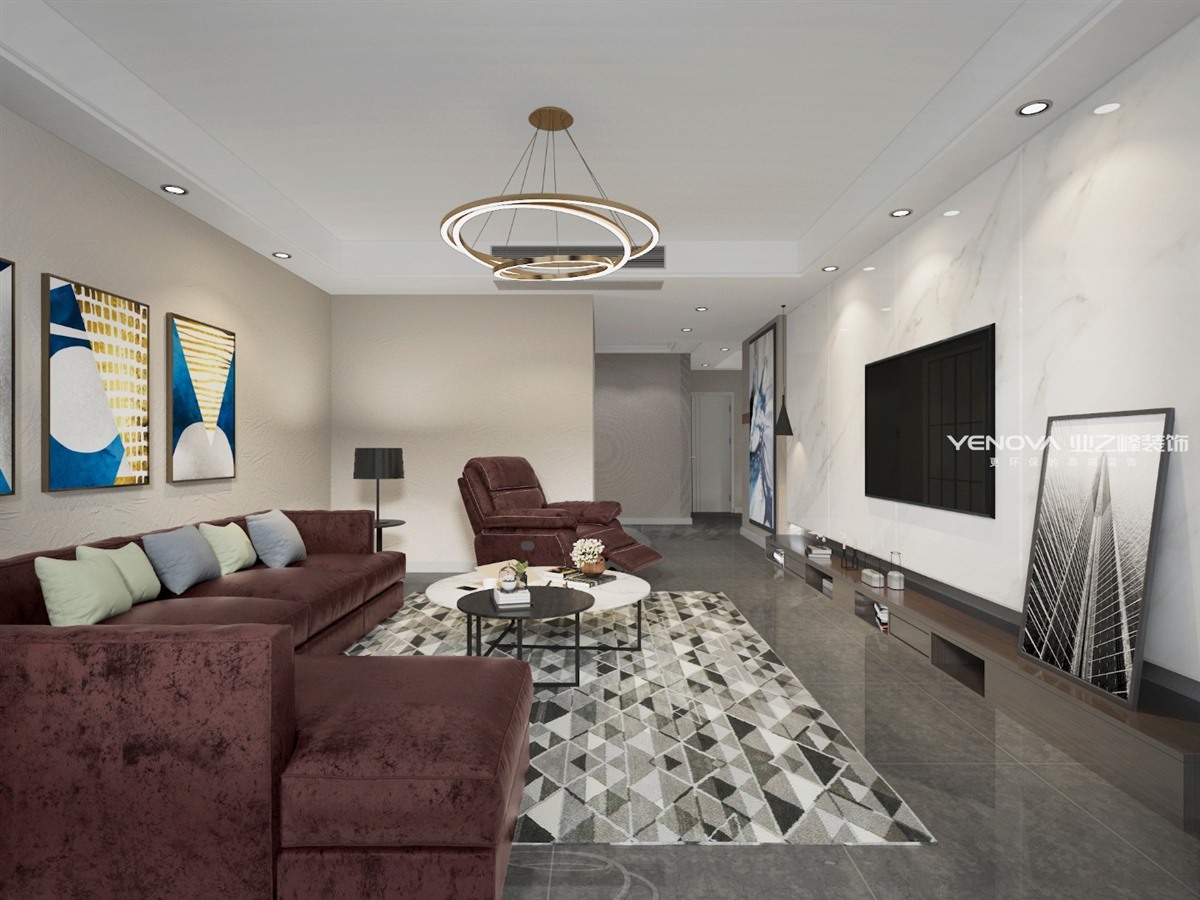 本案是隆泉华庭137平设计案例风格为现代风格,