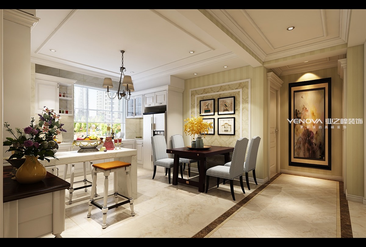 设计理念:餐厅和厨房融为一体后变得非常大气和通透,