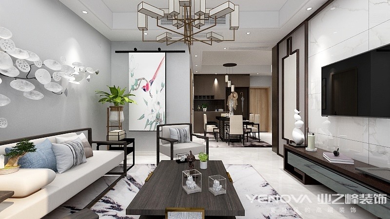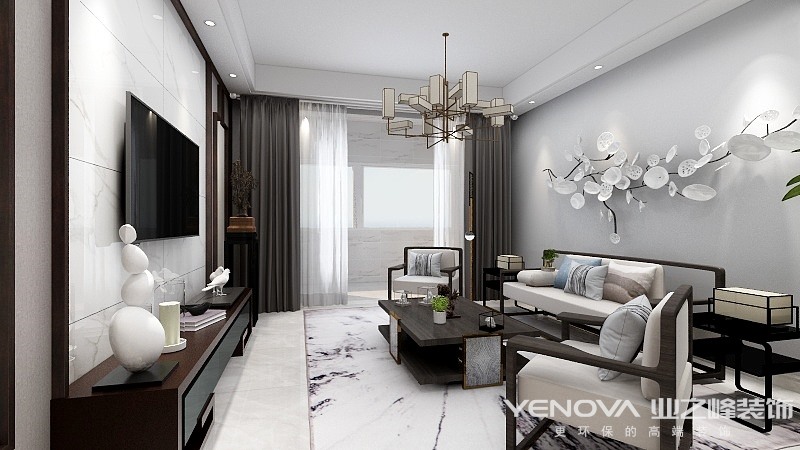 小区:梅湖明珠 面积:82㎡ 户型:二居 风格:新中式风格