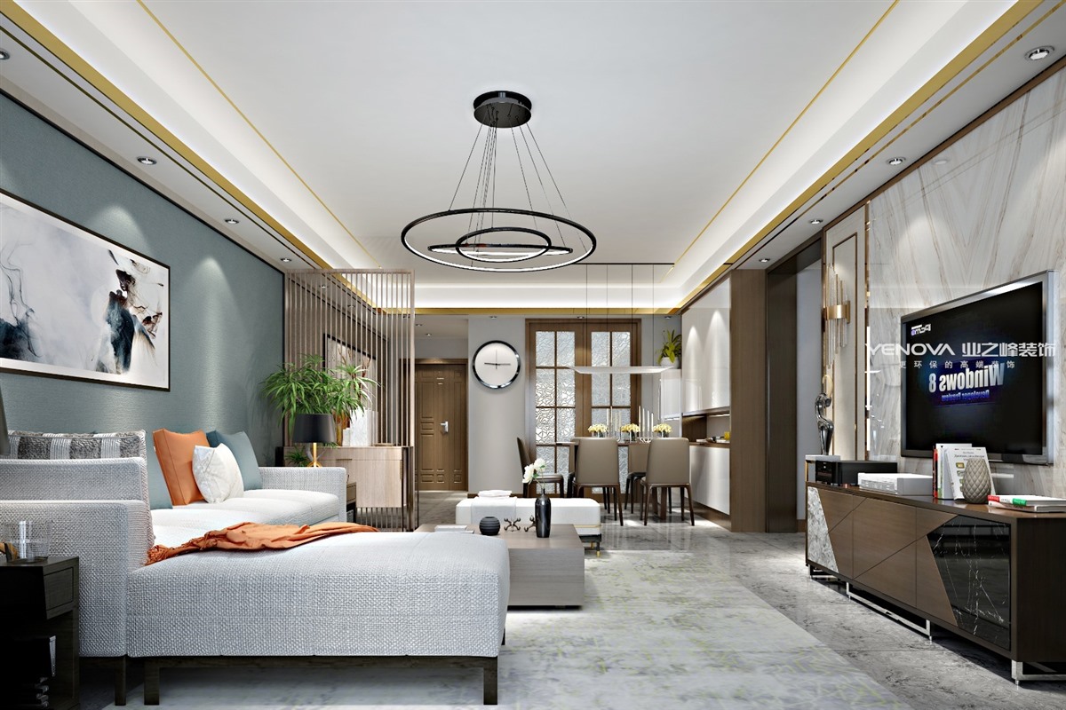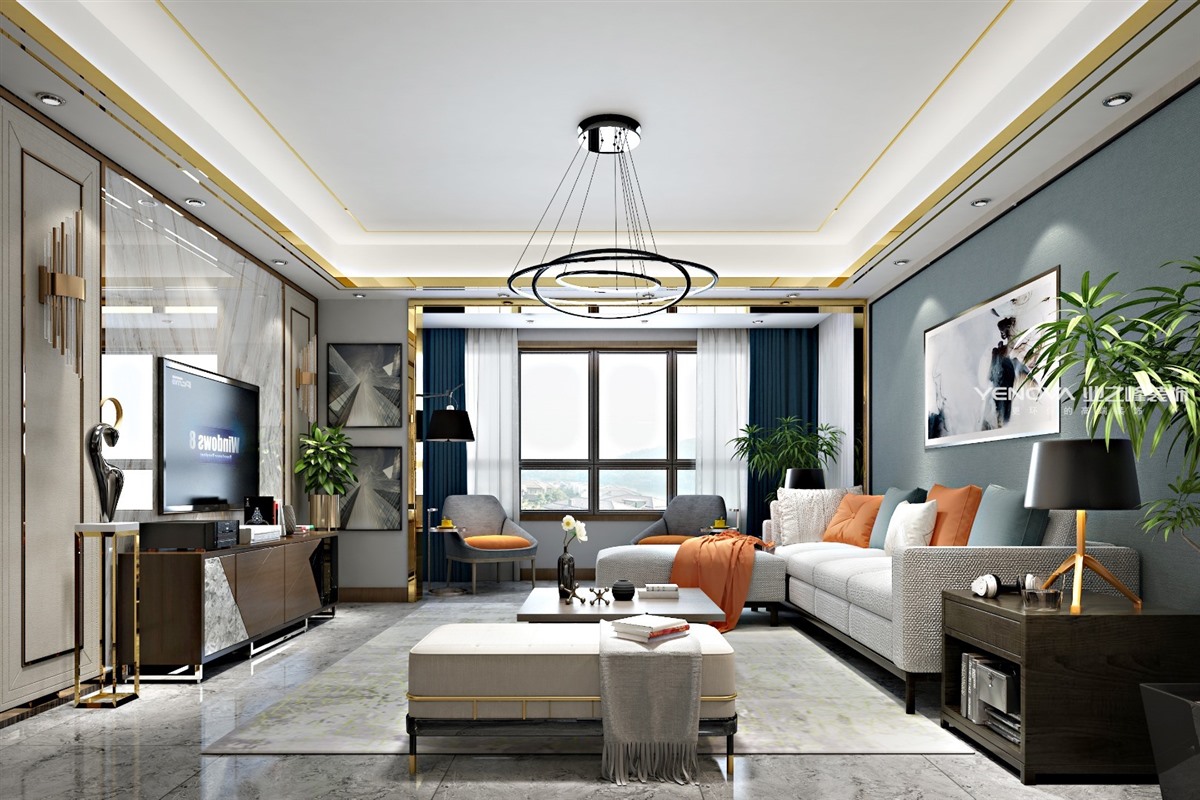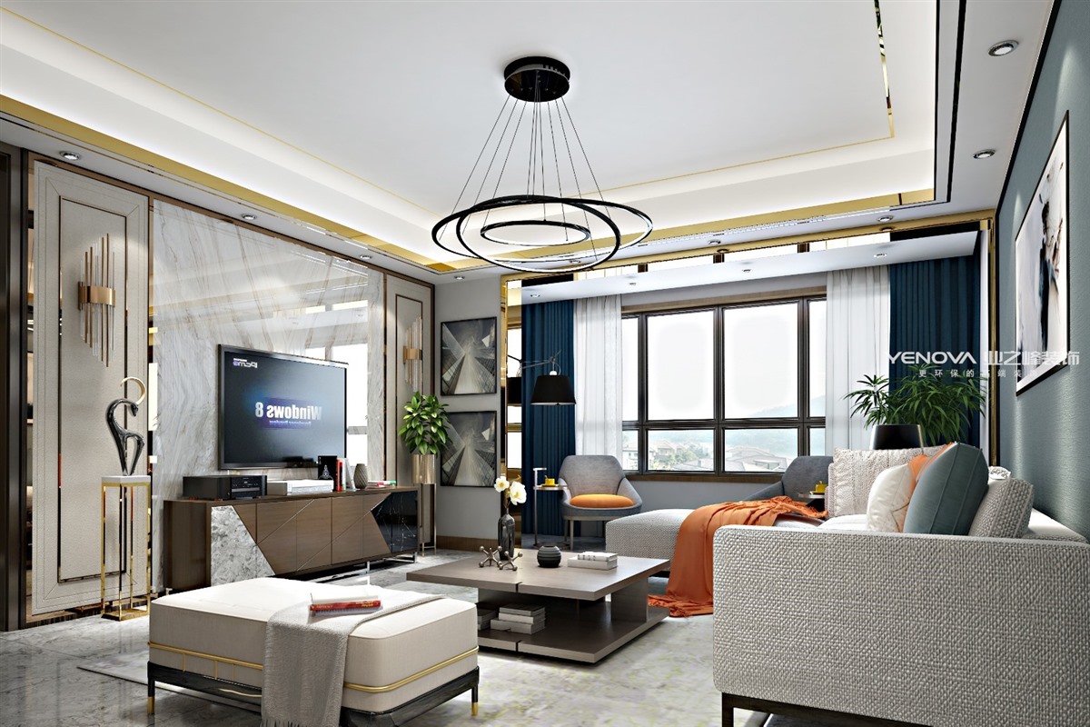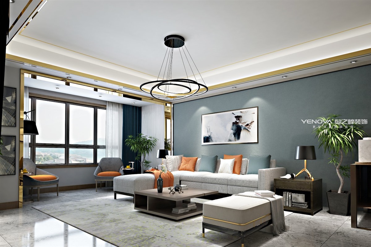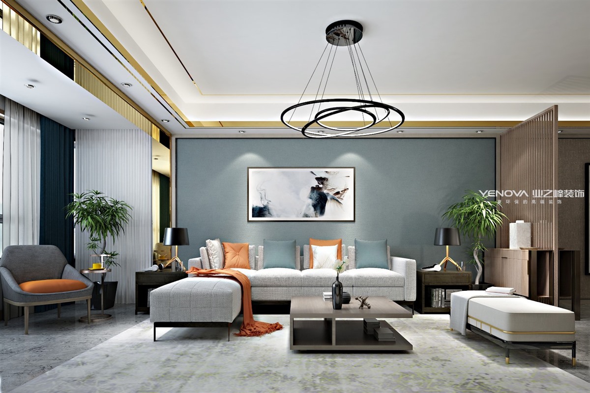 本案设计风格为现代轻奢,整体木制作以浅木色为基调,软装家具陈设以浅白浅灰色配合整体色调,配合着带有时尚现代的挂画,为整个空间营造出高雅轻奢的氛围。部分软装家具中偏向暖色调,以营造家居温馨感,与金色金属材质相互呼应,显得整个空间轻盈典雅。整体感觉是“高级的舒适感”
