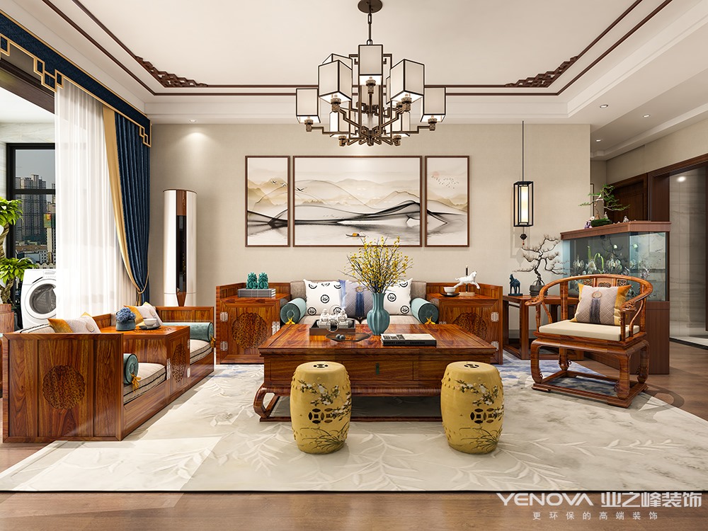 小区:荣盛锦绣学府 面积:140㎡ 户型:三居 风格:新中式风格