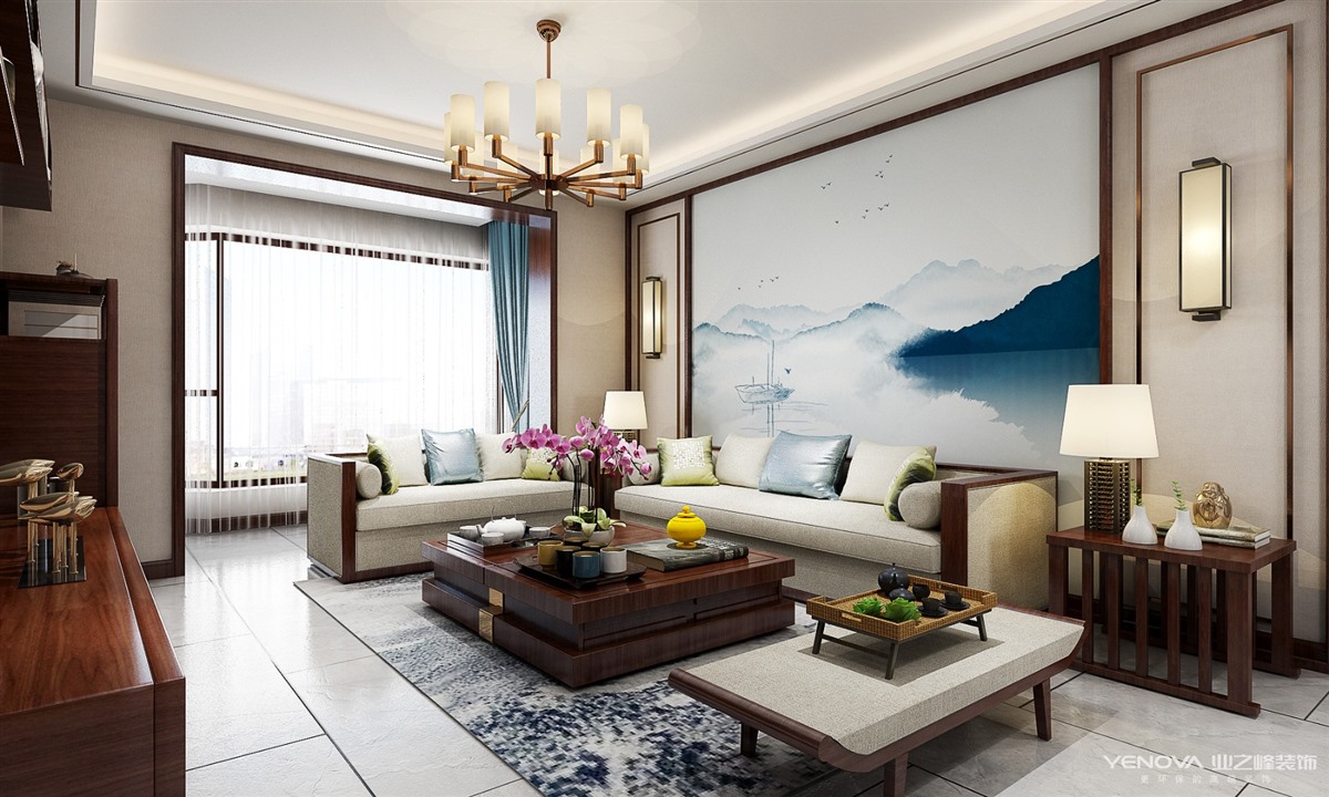 小区:远达·锦绣半岛 面积:125㎡ 户型:三居 风格:新中式风格