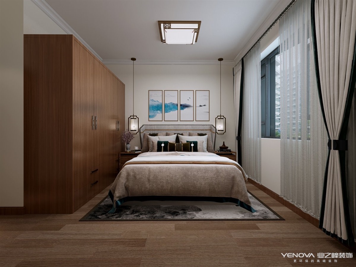 装饰造型:主要采用硬朗简洁的直线条,空间具有层次感。既使得中式家具古典、质朴的内涵显现,又符合现代人追求的时尚感、实用性。