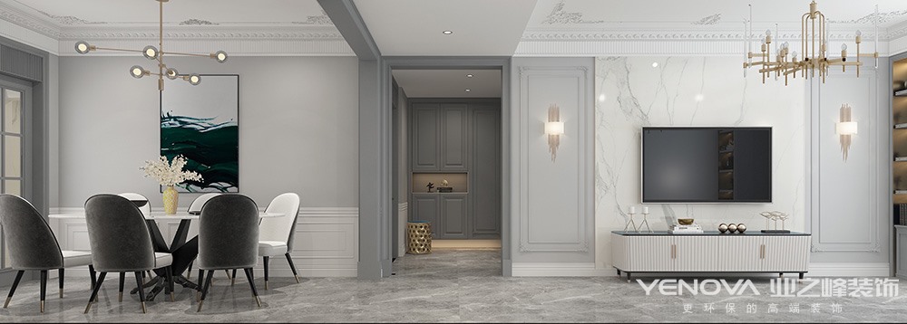 此方案整体设计风格为现代轻奢风格,现代轻奢是一种生活与态度,当喧嚣与繁华褪去,期望有一片舒适与宁静可以奢华但精致,对于年轻一族来说,温暖、轻松、愉悦、充满生活气息的品质生活才是他们真正的需求所在。比起在视觉层面的迎合,适宜的大小、满足日常居住的功能性、舒适的空间氛围更能打动他们。今年来也悄然飘起一股轻奢风。本案就是依据年轻人的心态,给他们带来纯粹而又温暖的家。运用现代的线条,加上金属铜色的搭配,整体运用典雅灰和冷静蓝的墙体色泽,从细节处彰显对生活的追求与享受。
