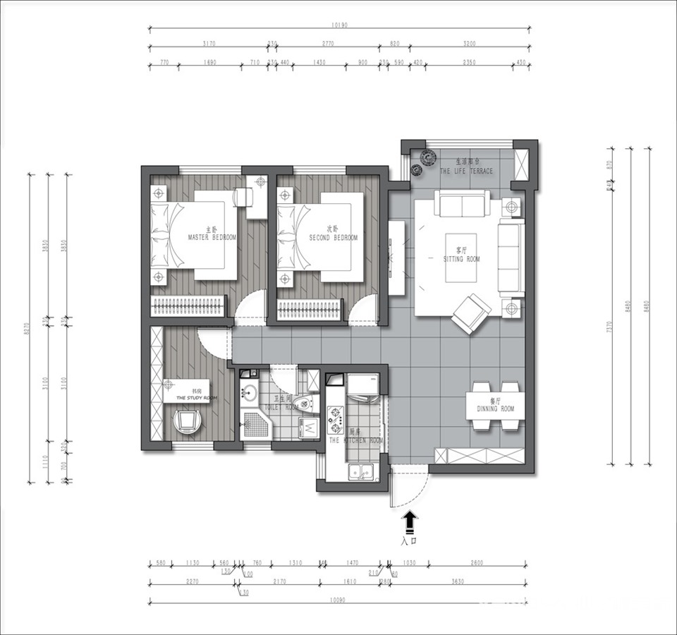 小区:宝镜檀香 面积:107㎡ 户型:三居 风格:新中式风格
