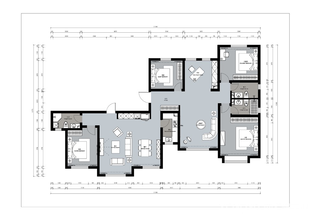 小区:龙溪帝景 面积:219㎡ 户型:四居 风格:混搭风格