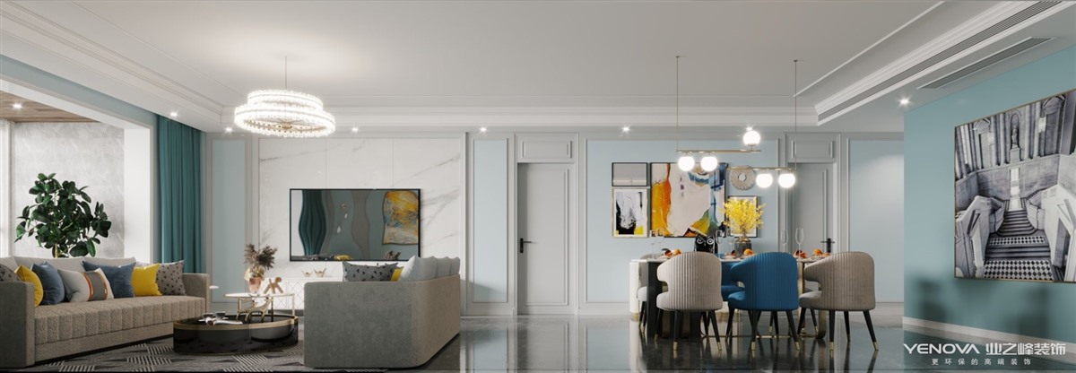 小区:万达天樾 面积:220㎡ 户型:平层 风格:简欧风格
