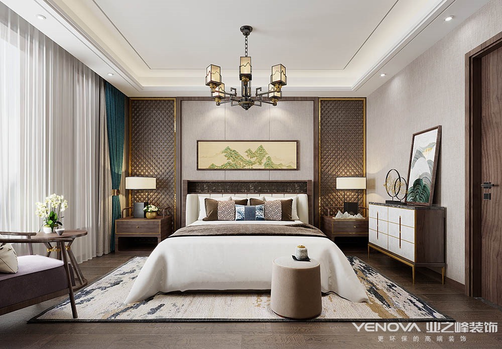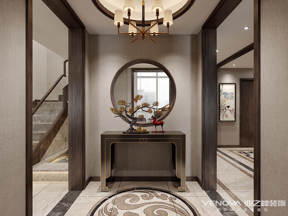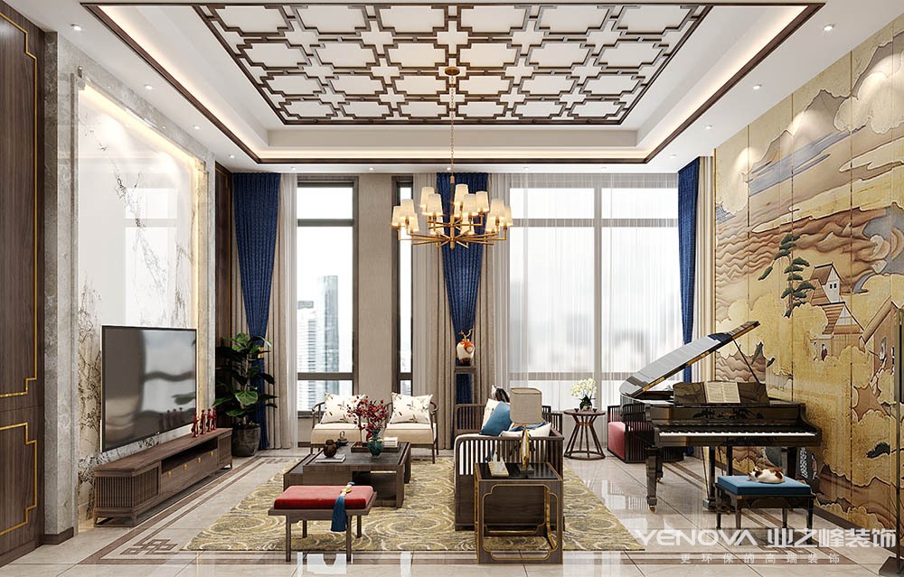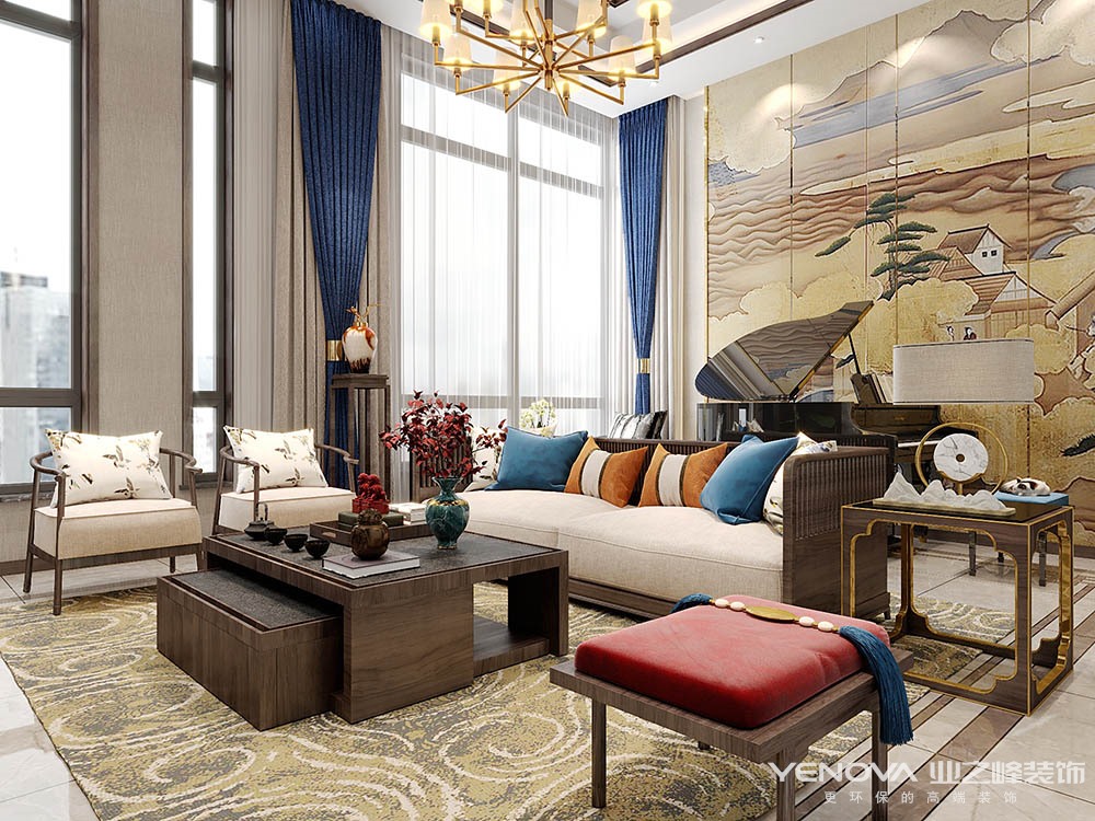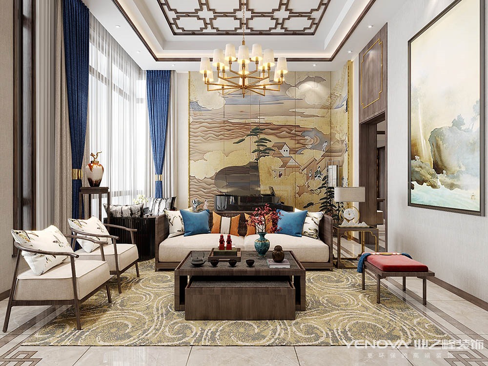 中国传统的室内设计融合了庄重与优雅双重气质。现代的中式风格更多的利用了后现代手法,把传统的结构形式通过重新设计组合以另一种民族特色的标志符号出现。例如,厅里摆一套明清式的红木家具,墙上挂一幅中国山水画等,传统的书房自然烧不来书柜、书案以及文房四宝。中式风格的客厅具有内蕴的风格,为了舒服,中式的环境中也常常用到沙发,但颜色仍然体现着中式的古朴,中式这样表现使整体空间,传统中透着现代,现代中揉着古典。这样就以一种东方人的‘留白’美学观念控制的节奏,显出大家风范,其墙壁上的字画无论数量还是内容都不在多,而在于它所营造的意境。可以说无论现在的西风如何劲吹,舒缓的意境始终是东方人特有的情怀,因此书法常常成就这种诗意的最好手段。这样躺在舒服的沙发上,任千年的故事顺指间流淌。