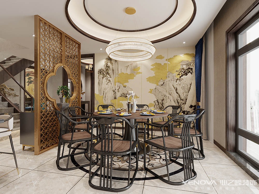 小区:北塘水岸花园 面积:243㎡ 户型:复式 风格:新中式风格