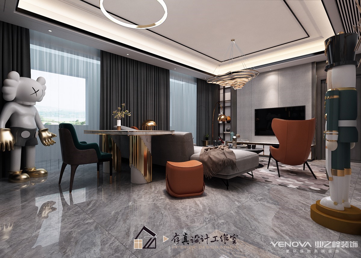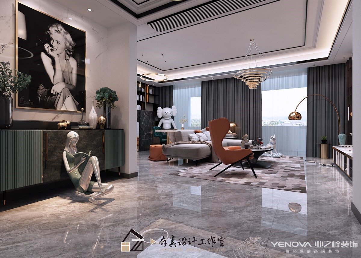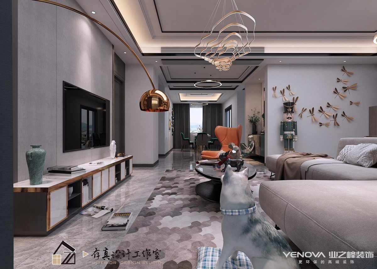 一般选择现代轻奢风格的客厅比例都比较宽敞,为了使空间利用率最大化。装修的时候可以选择将周围两面墙设计成落地玻璃窗,在视觉上看起来空间很宽敞,并且采光效果也很好。而客厅家具方面,建议采用灰色调以及金属元素的点缀,营造出沉稳却不失时尚的氛围。至于地面的装修,可以选择脚感十分舒适的木地板来装饰,使得整个客厅简约舒适中透露着轻奢的感觉。
