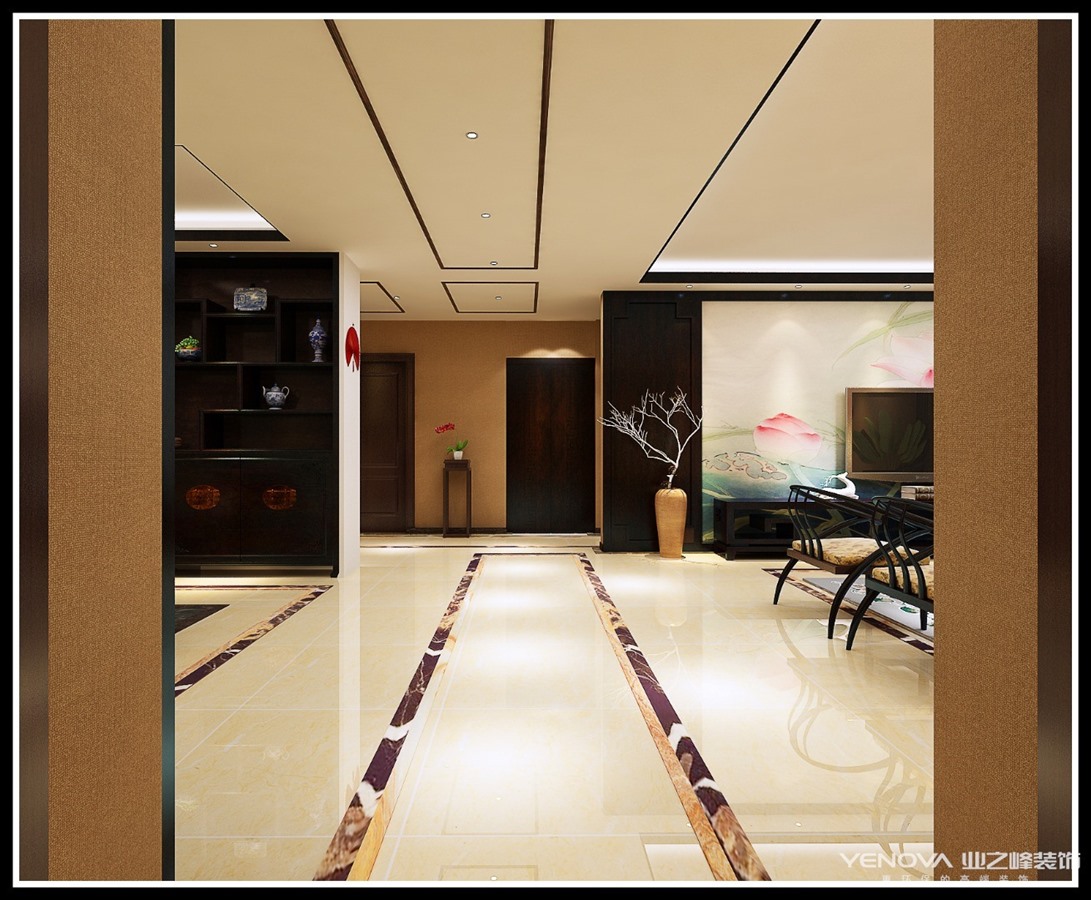 在中式装饰风格的住宅中,空间装饰多采用简洁、硬朗的直线条,有些家庭还会采用具有西方工业设计色彩的板式家具与中式风格的家具搭配使用。直线装饰在空间中的使用,不仅反映出现代人追求简单生活的居住要求,更迎和了中式家居追求内敛、质朴的设计风格,使中式风格更加实用、更富现代感。