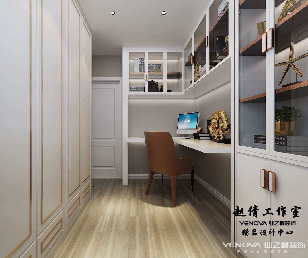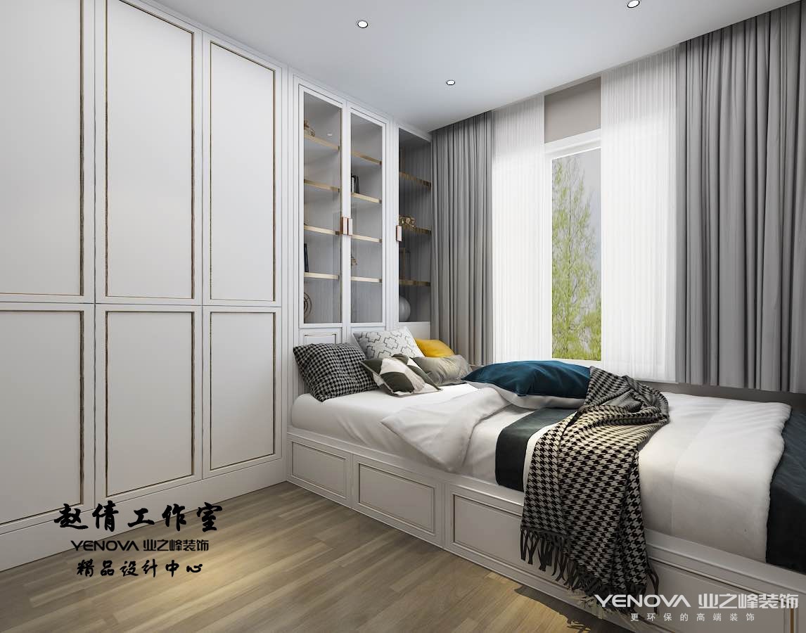 轻奢主义无关金钱与其他,就像卧室里并没有奢靡的装潢也没有华丽丽的装饰,只有刚好合适的淡淡舒适感。无负担、有品质的生活态度,每个人心中都渴望拥有一个美妙无比的早晨,当明媚的阳光倾泻在墙面及地板上,眯着眼睛伸一个舒展的懒腰,整个卧室似有咖啡香味弥漫开来。干净柔软的地毯、柔软舒适的丝质床品、精致的饰品、啡色调的墙纸使整个空间洋溢着阳光质感,优雅温婉。午后,阳光正好,选一本最爱的书,静静地蜷在沙发上,选择一个最舒服的姿势,独独真切地去感受此刻故事的美妙。