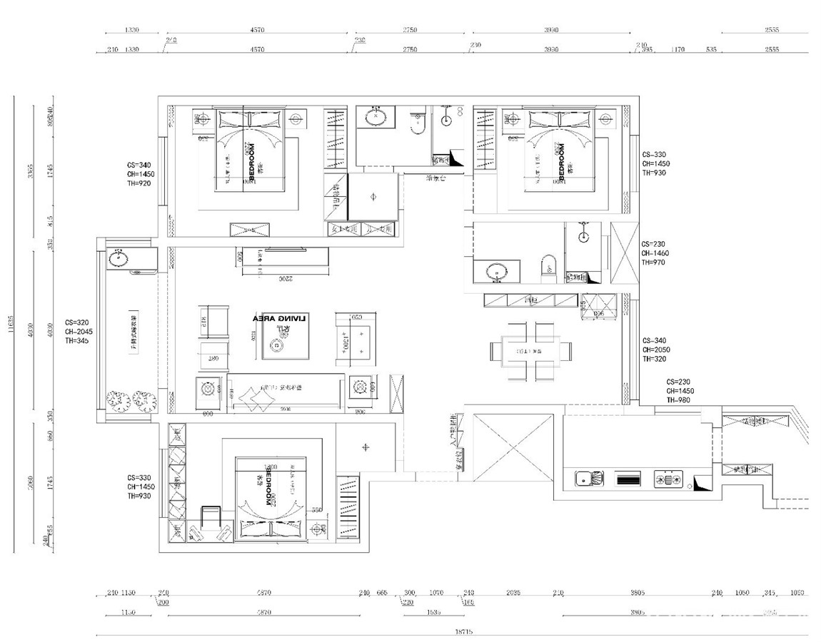 140㎡三居简欧风格东方天澍