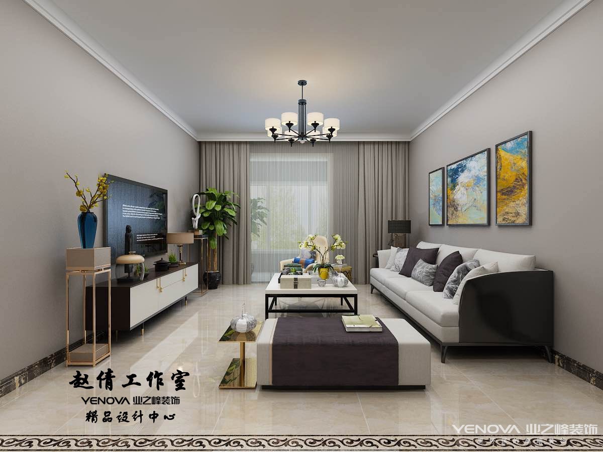 96㎡三居现代简约风格翡翠清河