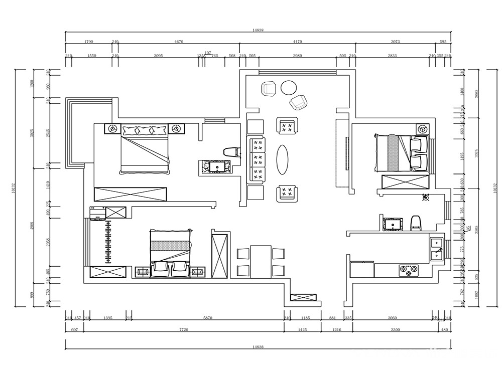 小区:海尔云世界 面积:118㎡ 户型:三居 风格:法式风格