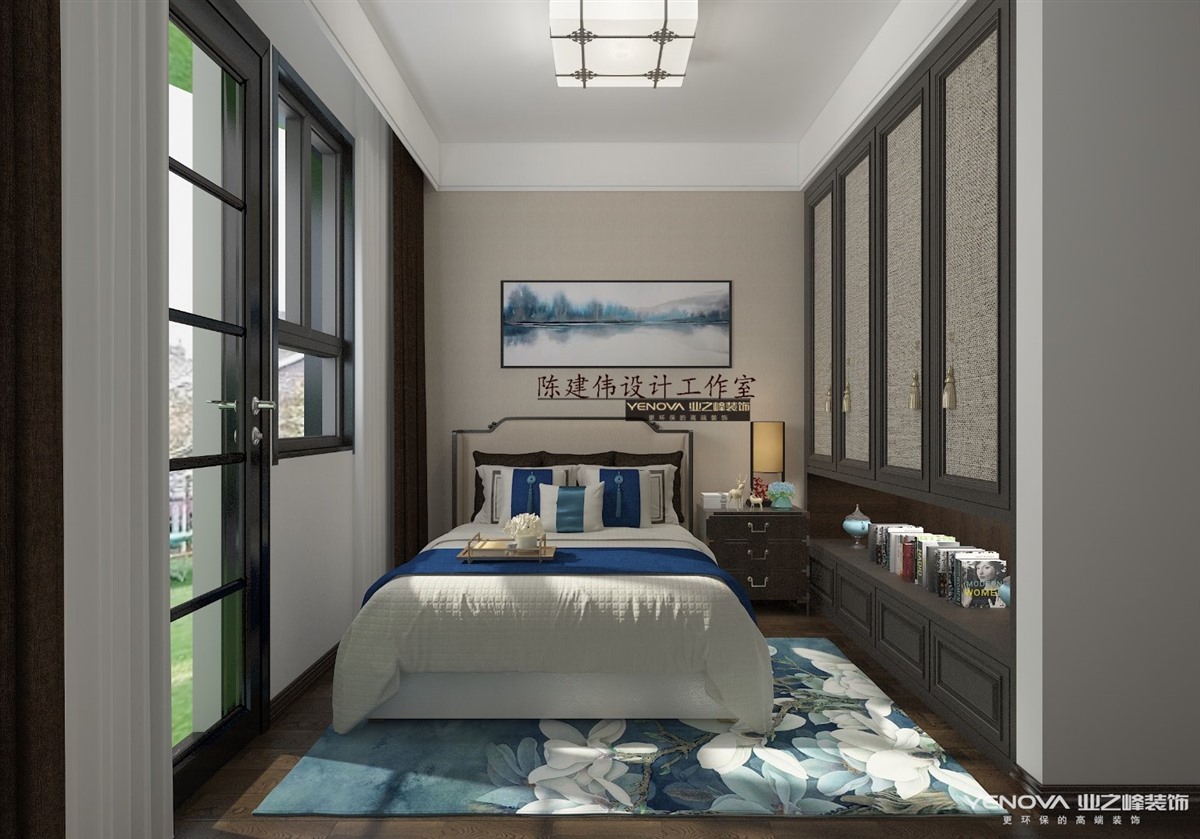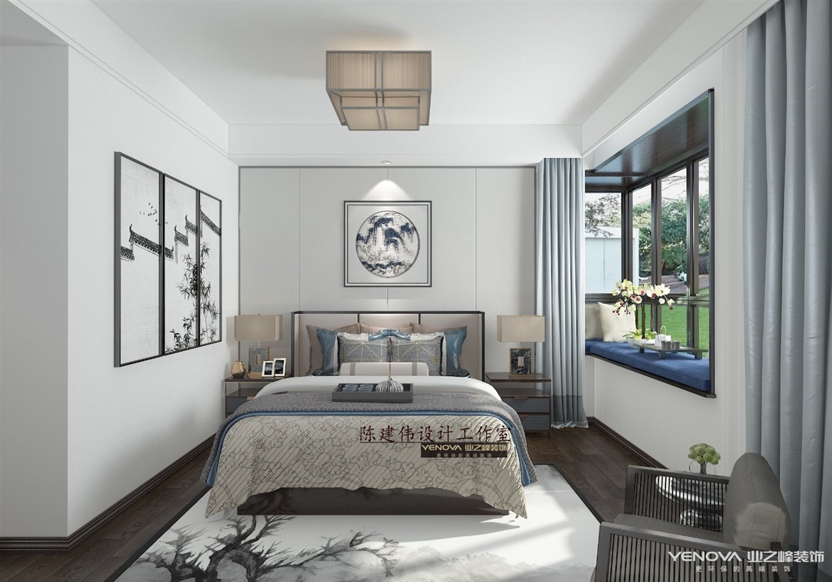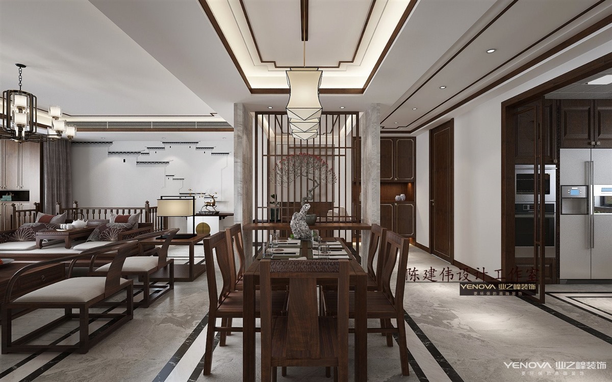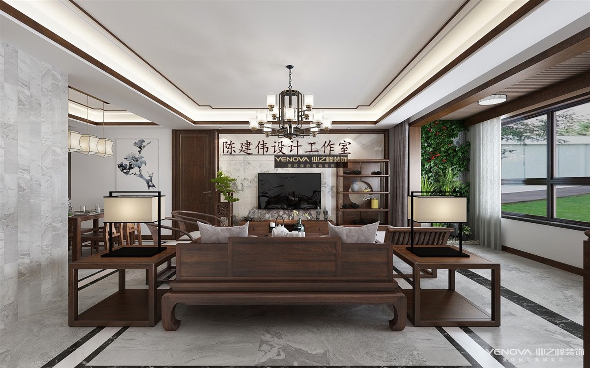 本案将传统中式以红、黑为主的风格与当代社会的时尚元素敏感有效的结合在一起。保留中式传统的室内陈设,字画,盆景,屏风,博古架等。同时在细节上崇尚自然情趣。使得房间更加丰富。大而不空,厚而不重。客厅的大空间摆上实木家具和阳台的生态木引起共鸣。线条的玄关造型和两个独立单人沙发给人以轻松明快的视觉效果。顶面的木质线条勾勒出吊顶的形状并加以丰富。简洁的造型墙利用古代的瓦砖屋顶奠定了传统中式的古风古韵。