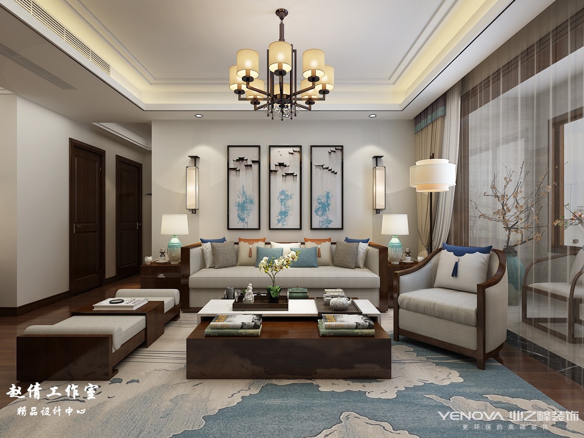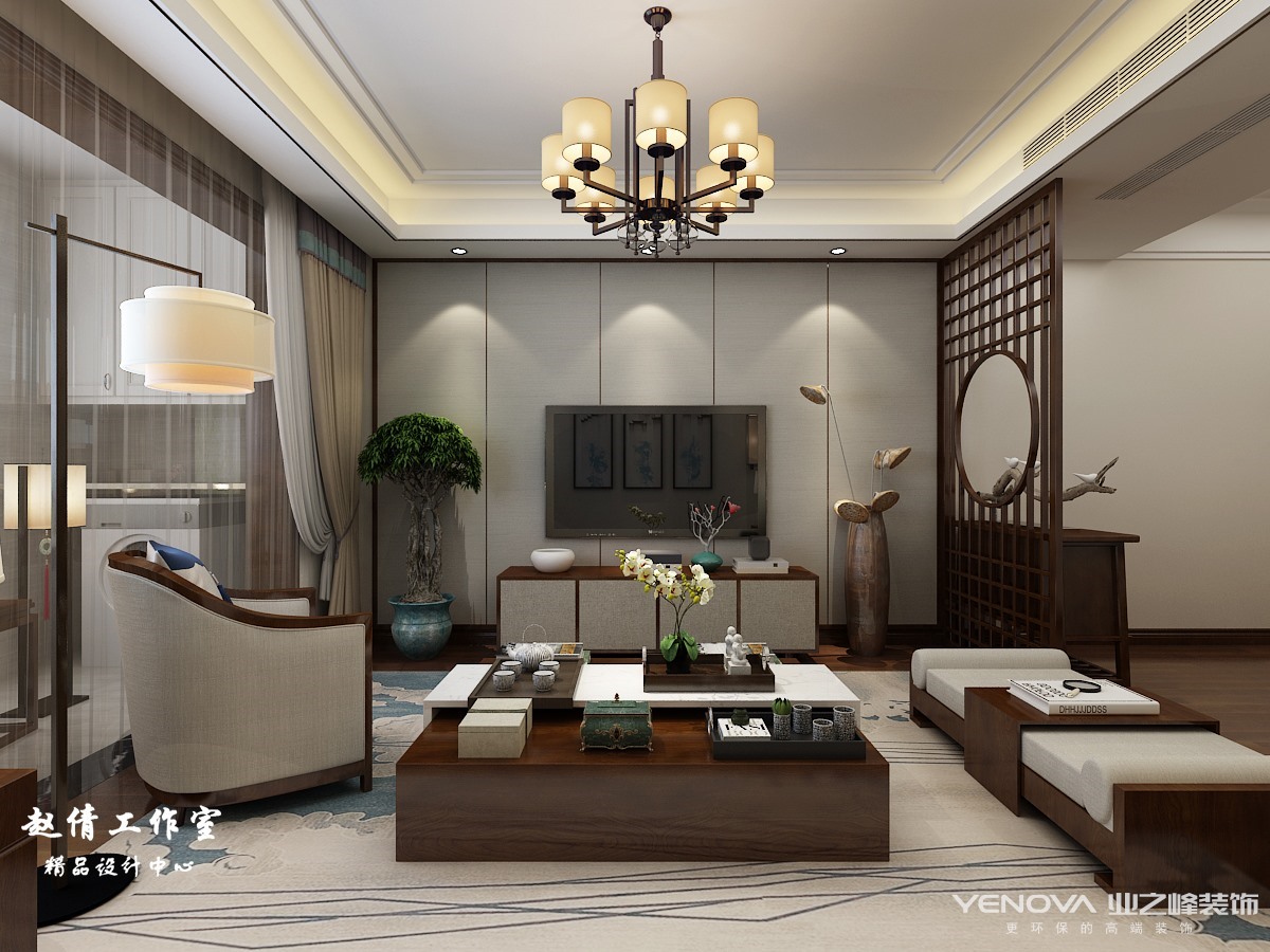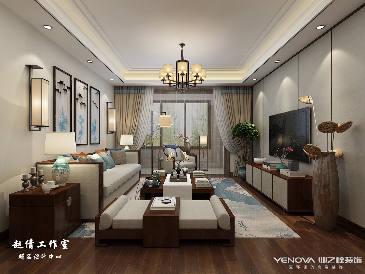 小区:国熙台 面积:90㎡ 户型:二居 风格:新中式风格